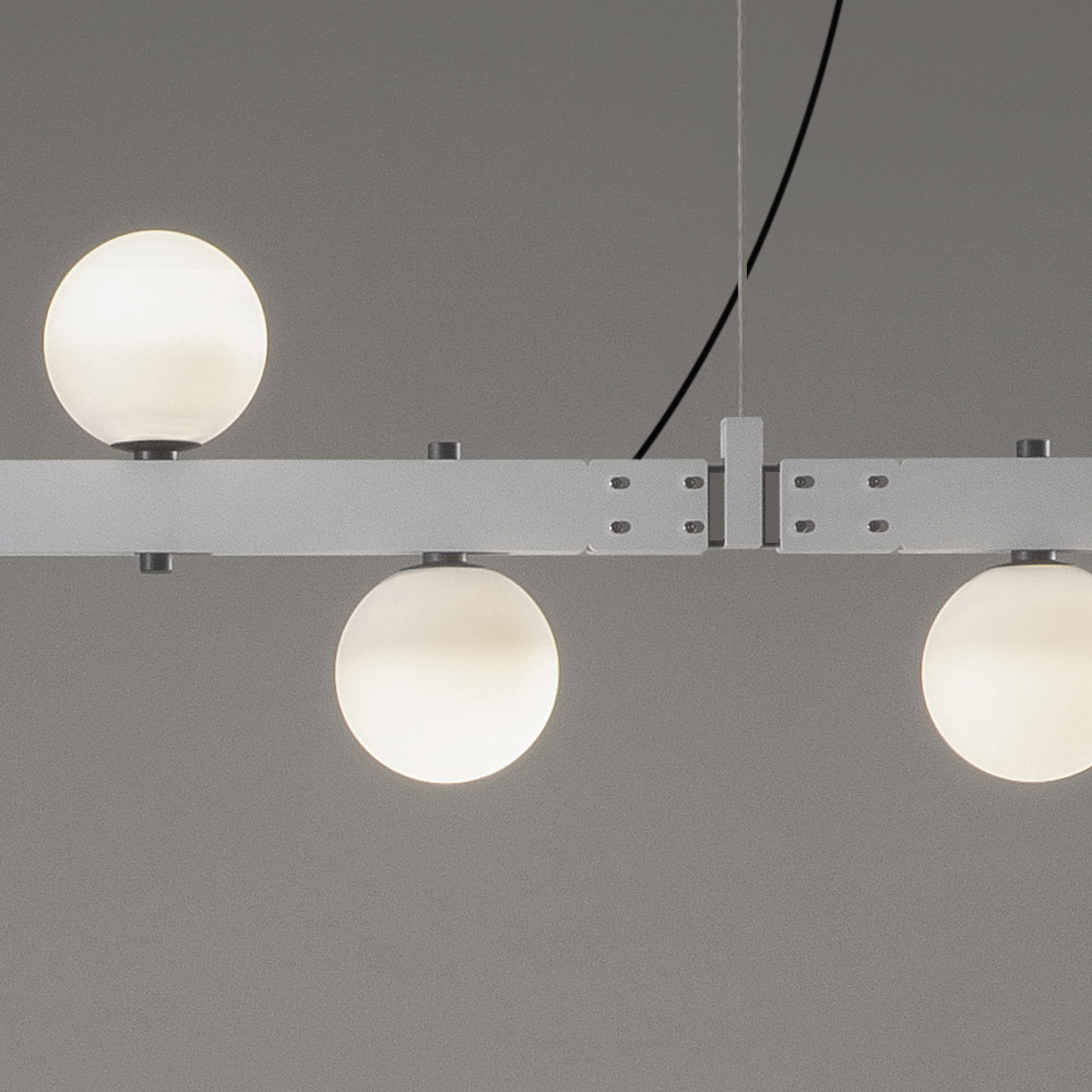 As barras de sustentação remetem às estruturas de engenharia do passado e as estruturas modulares eletrificadas suportam corpos de iluminação ( esferas de vidro soprado e holofotes ) que podem ser colocados em quantidade e disposição livre, sem o uso de cabos de energia elétrica, para máxima liberdade expressiva. .
