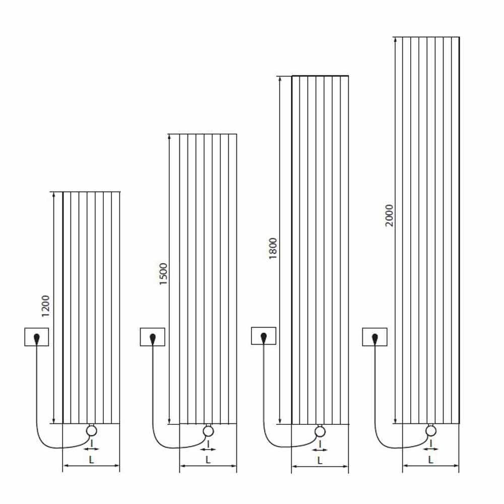 Disponível em diferentes tamanhos:- H 1200 x C 293 x Inter. 46 mm x rendimento w 400;