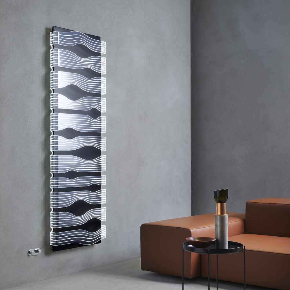 radiador em aço carbono e metacrilato com luz LED adequado para ambientes contemporâneos,