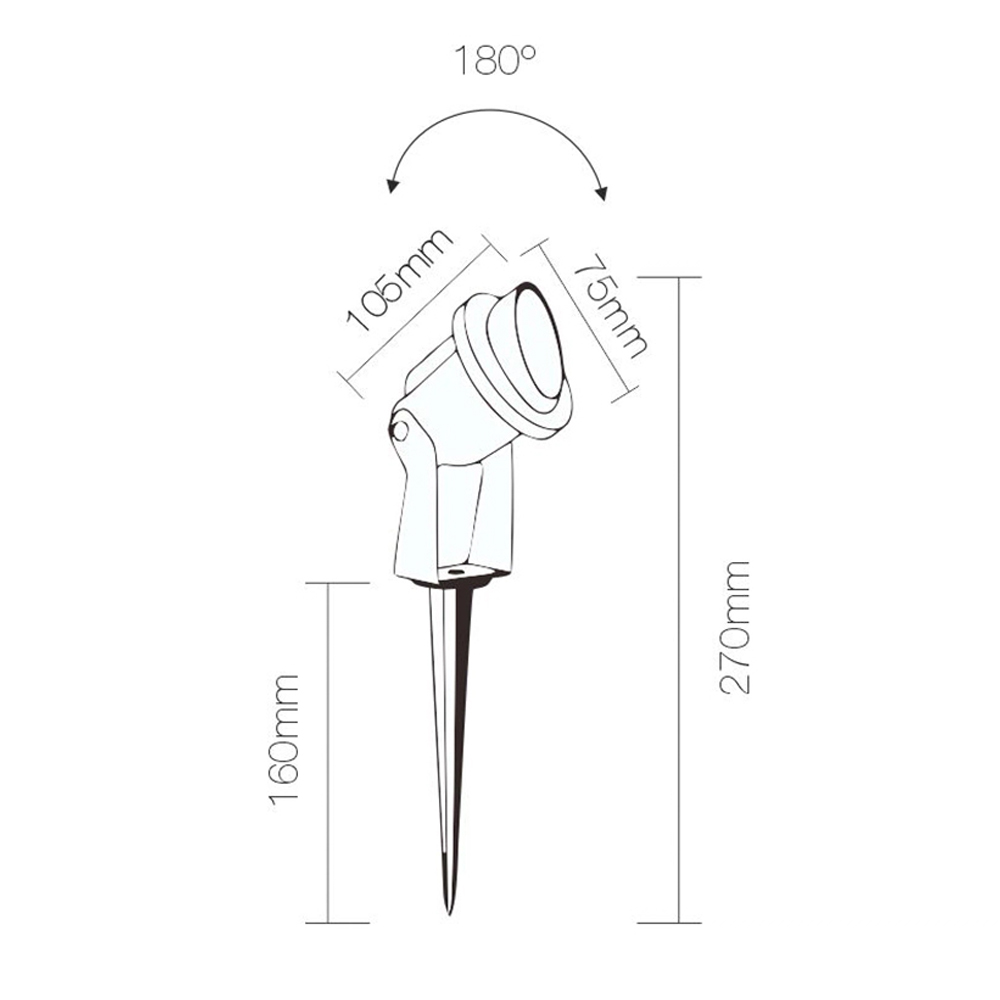 Projetor de holofotes para exteriores em alumínio fundido preto com corpo ajustável em 180 ° completo com LED 5W . Um spot LED para utilização exterior com ponta para embutir no solo caracterizado por um estilo minimalista e elevada funcionalidade que permite projectar um feixe de luz diferente de acordo com as suas necessidades graças à possibilidade de o orientar de acordo com as suas necessidades. Ideal para iluminar plantas, árvores, canteiros de flores em espaços exteriores, como jardins, tanto em espaços domésticos como em ambientes contratuais.