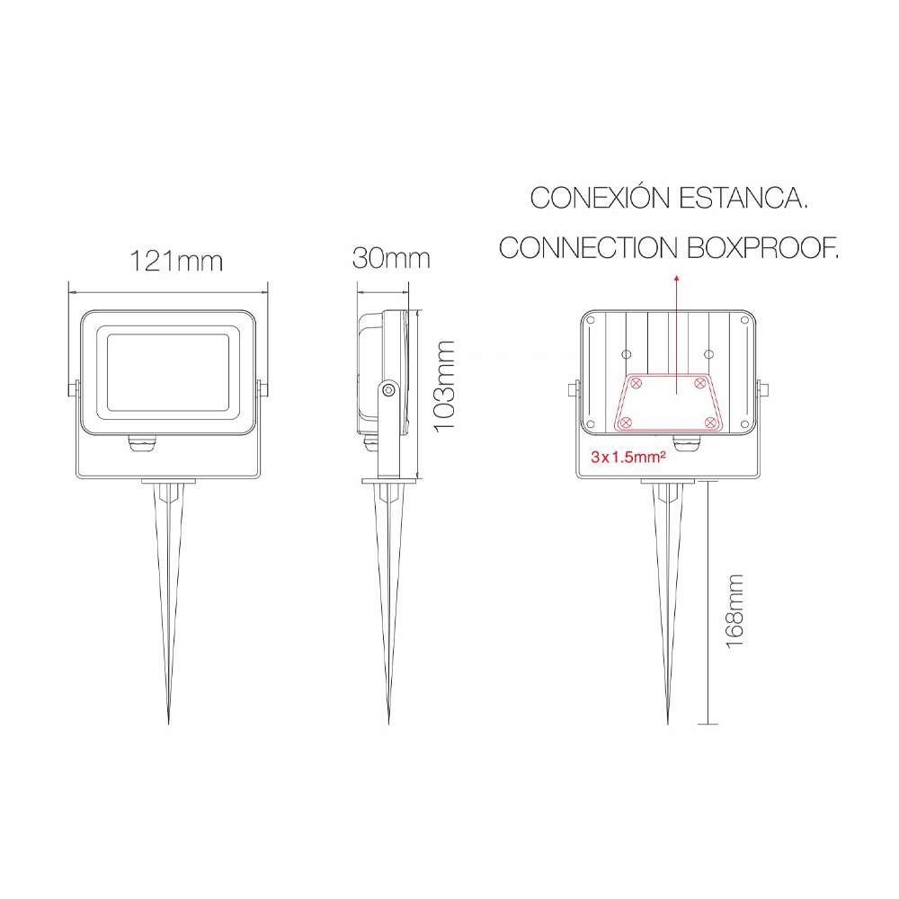 projetor dinâmico e extremamente versátil ideal para várias soluções de decoração de exterior e para iluminar plantas, árvores, canteiros de flores, terraços, mas também jardins, praças e muito mais em situações domésticas, mas também em ambientes de contrato com bares e restaurantes ao ar livre.