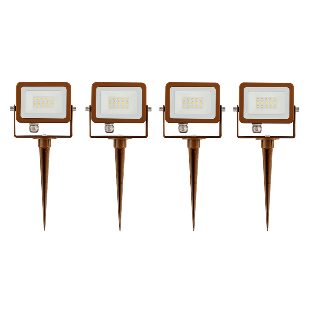 Projetor de led outdoor em alumínio com acabamento corten, 4 peças.
