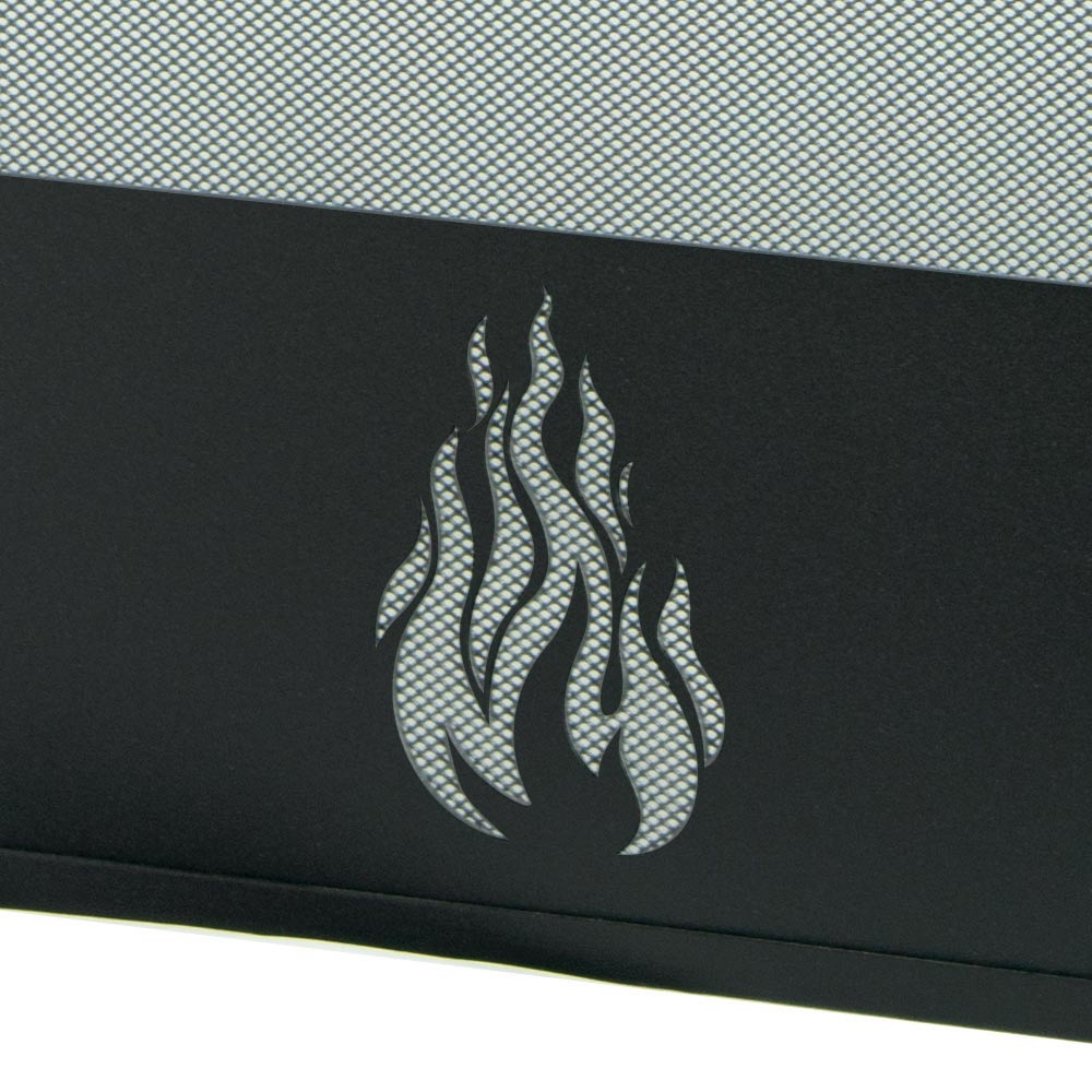 A estrutura metálica robusta e durável é embelezada com um acabamento que combina com elegância sóbria com qualquer tipo de mobiliário, do clássico ao contemporâneo. O design é clean e moderno, com linhas claras que conferem um visual refinado e minimalista, enquanto o motivo decorativo da chama estilizada na parte inferior adiciona um toque de caráter único e distinto.