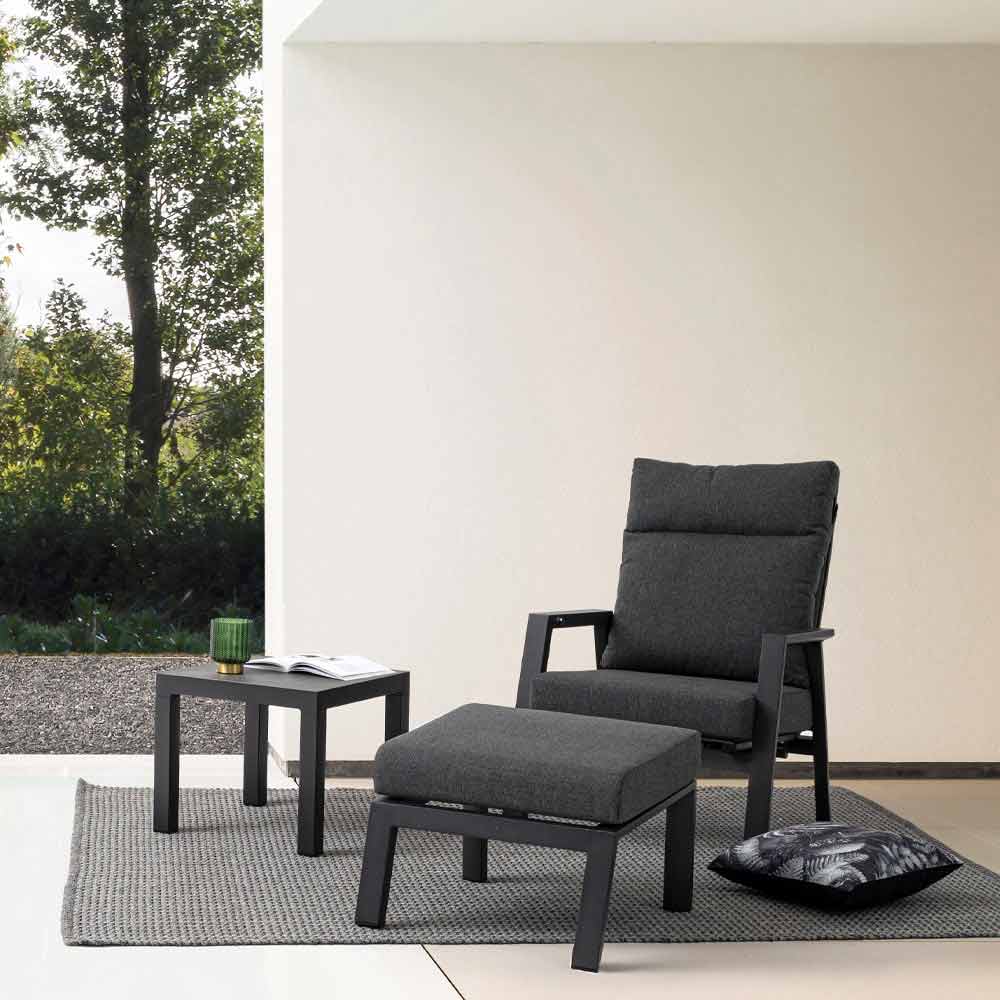 Pufe de apoio para os pés em alumínio pintado com almofada removível.