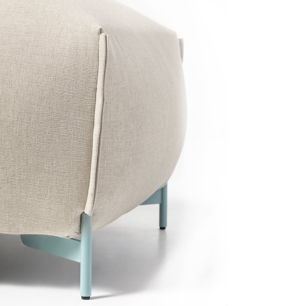 macio e confortável , ideal para criar um pequeno recanto de descontração informal se utilizado individualmente ou, em várias versões, verdadeiras ilhas de conforto que comunicam entre si através de uma perfeita harmonia de cores e materiais .