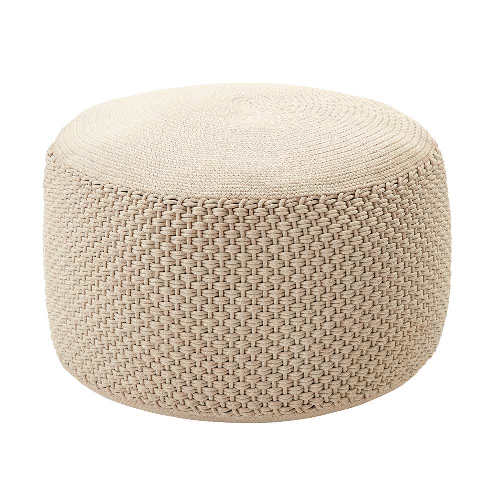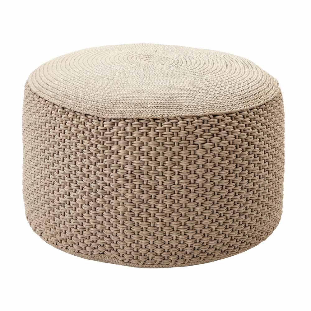 Pufe Otomano redondo para uso interno ou externo em azul, cinza pomba ou fibra de poliéster de cânhamo, artigo de qualidade made in Italy.