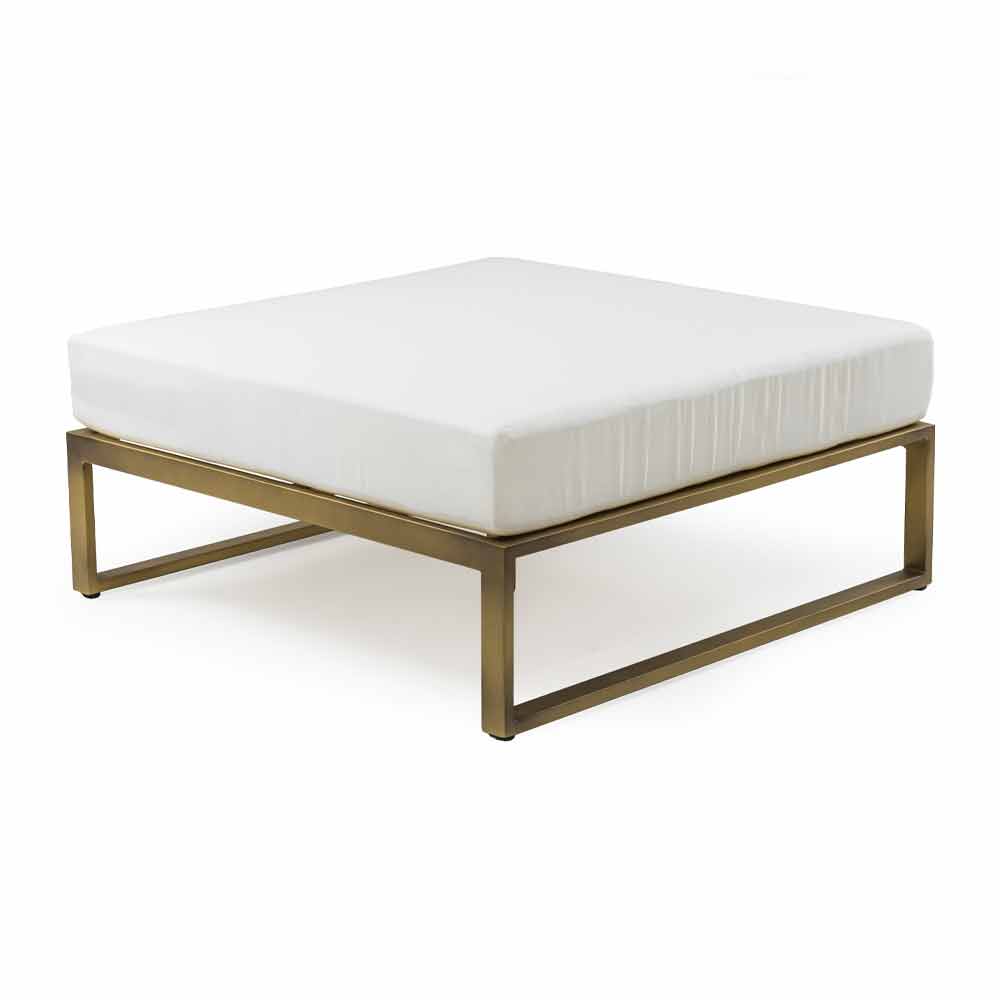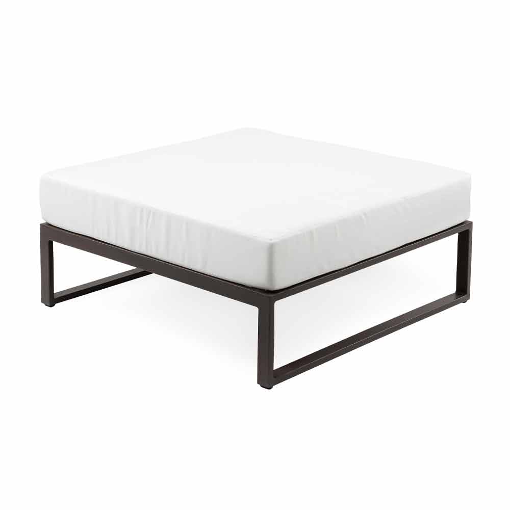 Pufe quadrado para sala de estar ao ar livre com estrutura de alumínio em 3 acabamentos e almofada de tecido branco, design luxo.