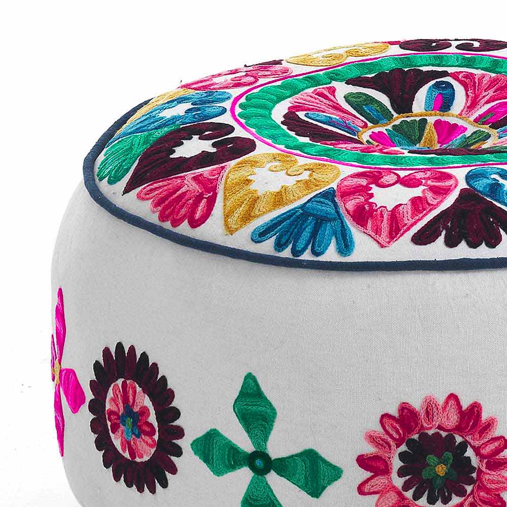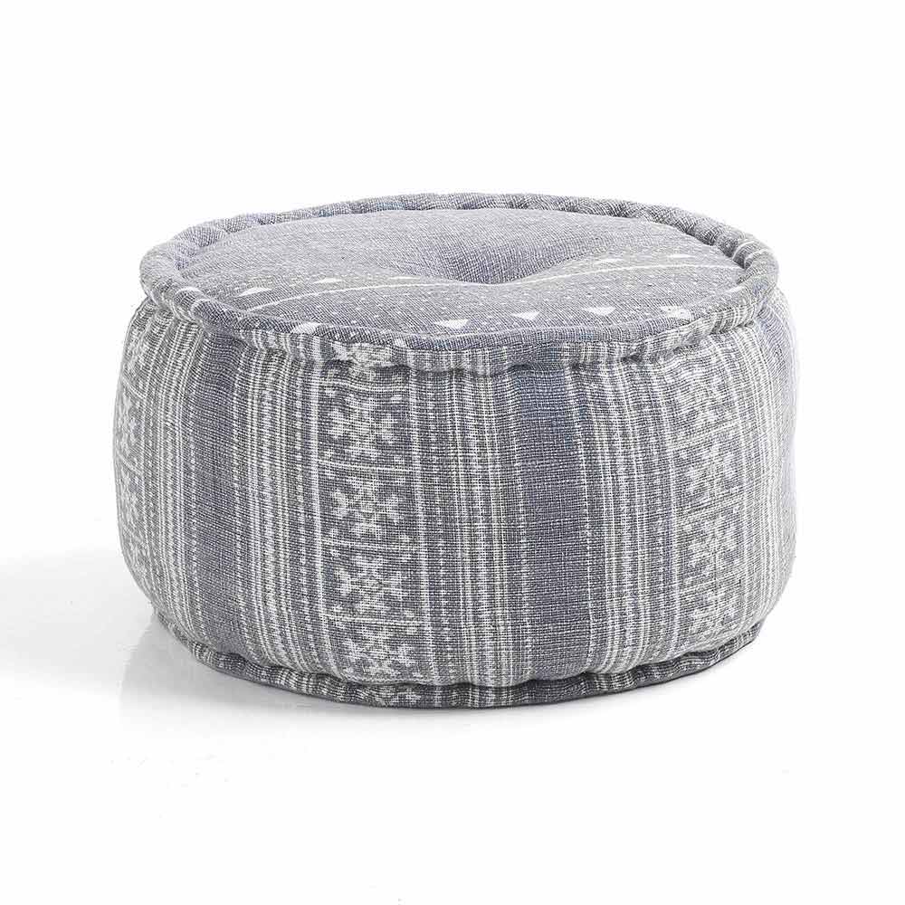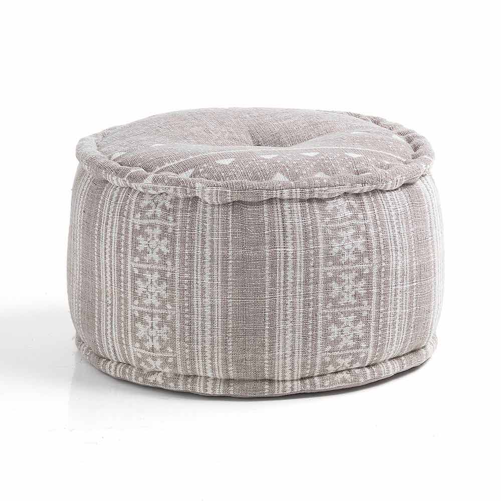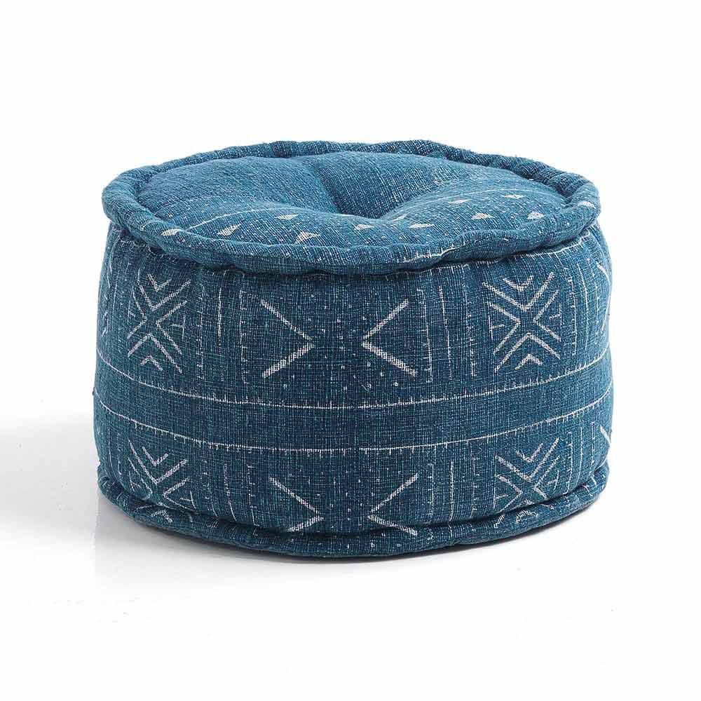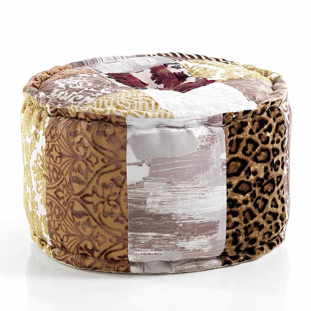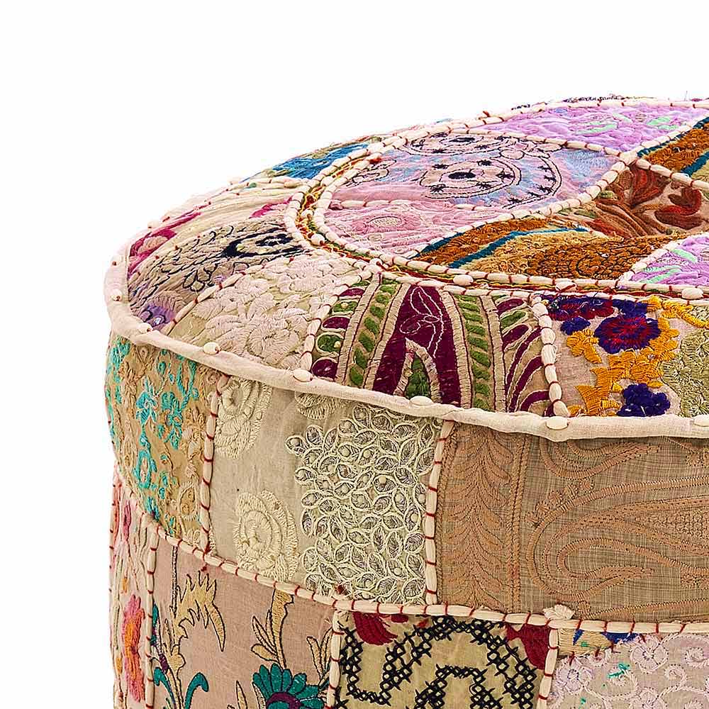 Pufe redondo de design étnico em tecido de retalhos ou veludo - fibra