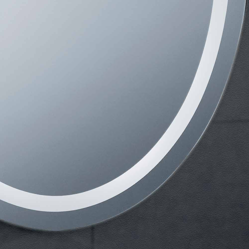 Espelho para casa de banho com iluminação LED integrada e bordas em aço inoxidável.