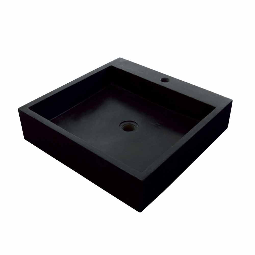 Lavatório de apoio quadrado em preto natural pedra de basalto Ban