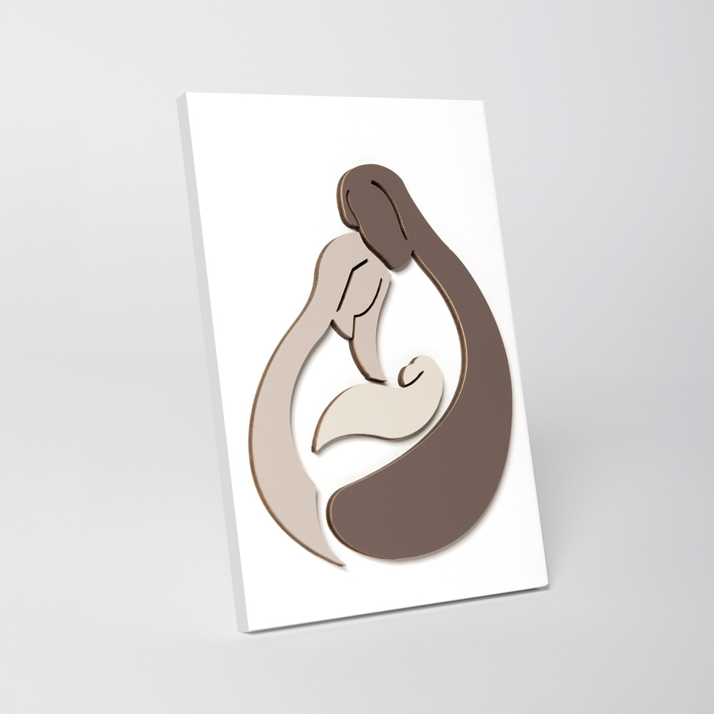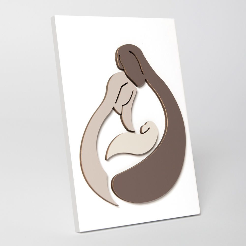 Esta pintura é resultado do artesanato italiano, as figuras são desenhadas à mão e depois pintadas com a luz do feixe de laser, sem desperdício e respeitando o meio ambiente. Para este elemento, um estilo mínimo e essencial foi escolhido especificamente para realçar e representar apenas o advento de Jesus. A união de acabamentos e cores cria um produto único em seu gênero que revela o amor e o carinho da família.