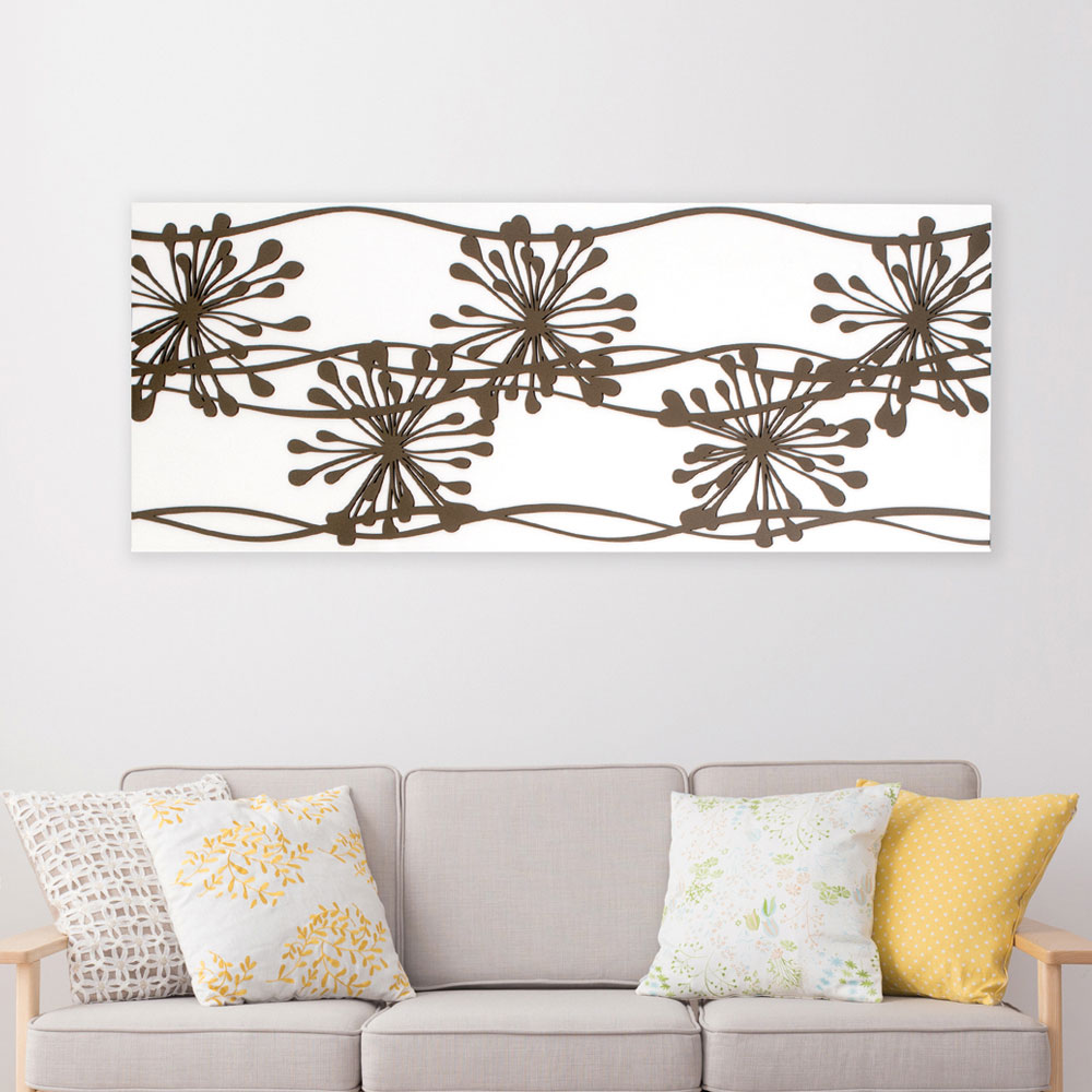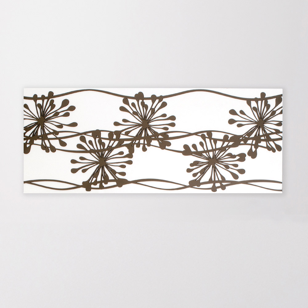 Painel abstrato para decoração elegante, feito em madeira lacada branca com decorações lacadas cinza pomba de anêmonas .
