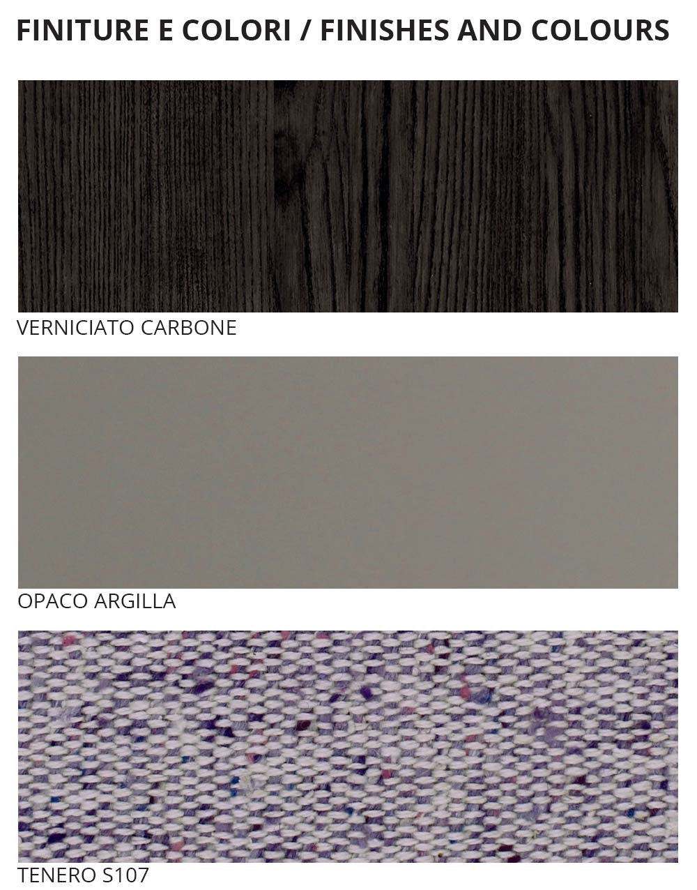 cômoda com 6 gavetas (composta por 6 elementos modulares) em madeira envernizada a carvão e argila lacada mate. Da análise criteriosa de diferentes formas, volumes e tamanhos,
