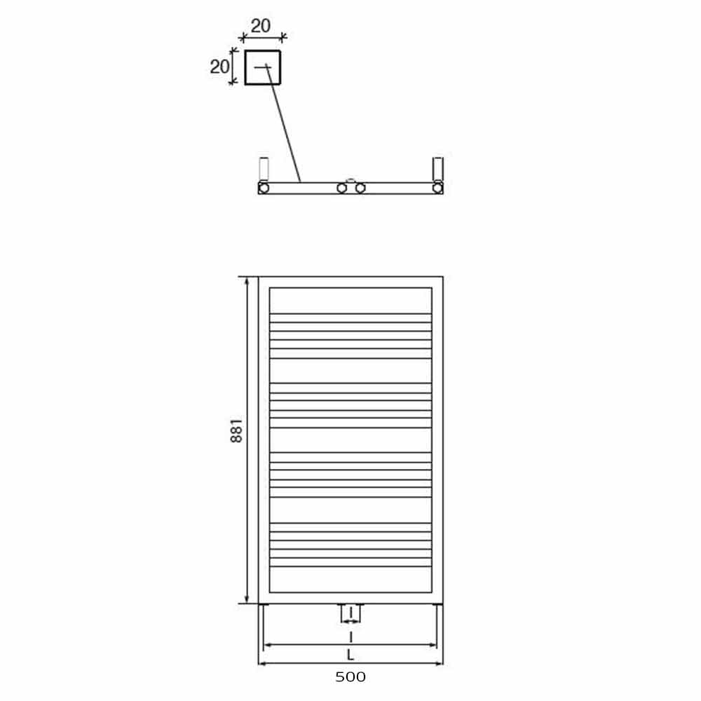 Este radiador hidráulico apresenta um design cromado com tubos quadrados verticais de 30x30mm e tubos quadrados horizontais de 20x20mm.
