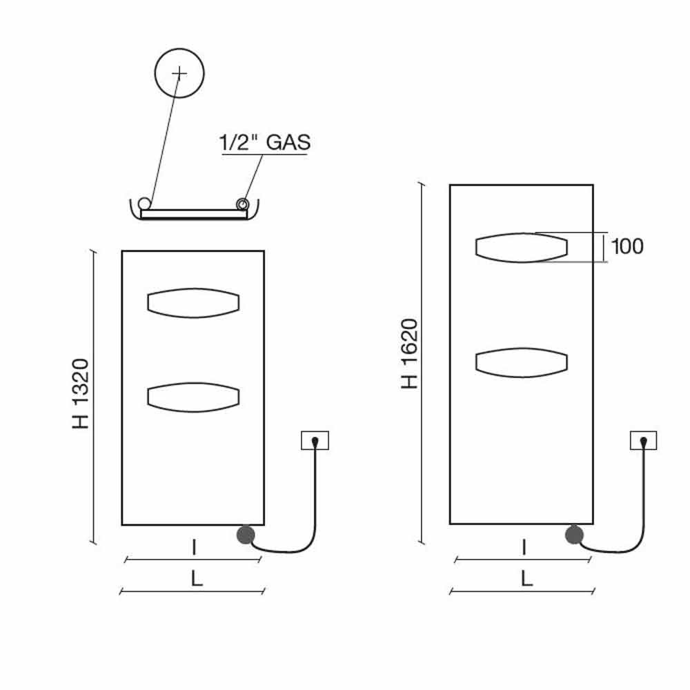 O termostato de 110 mm deve ser adicionado à altura. Caixa termostática branca como padrão para radiadores brancos; cromo para os radiadores coloridos e acabamentos em aço inoxidável. Fonte de alimentação monofásica de 230 volts.