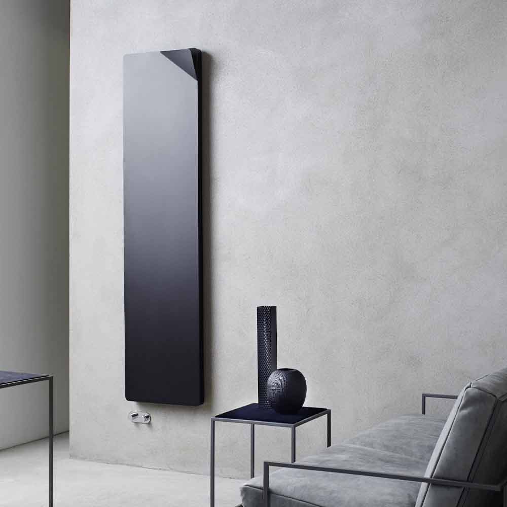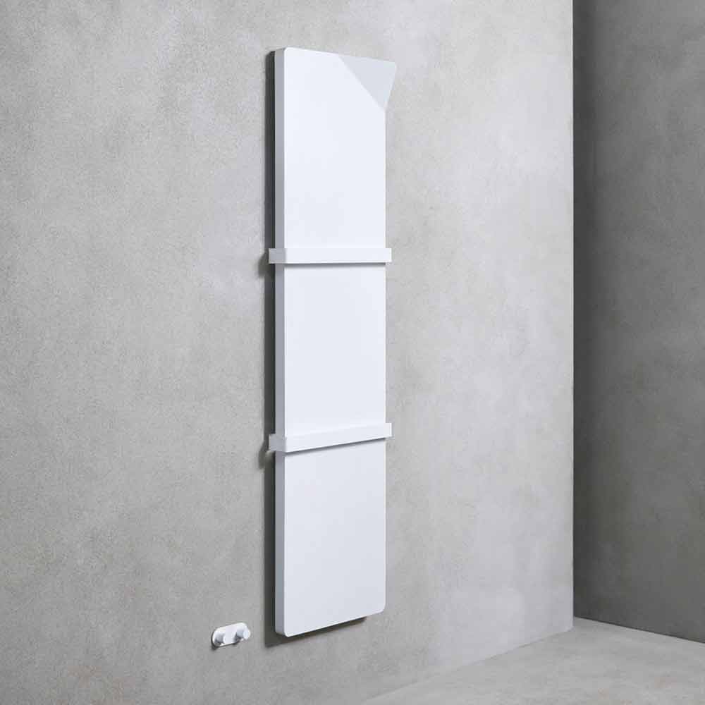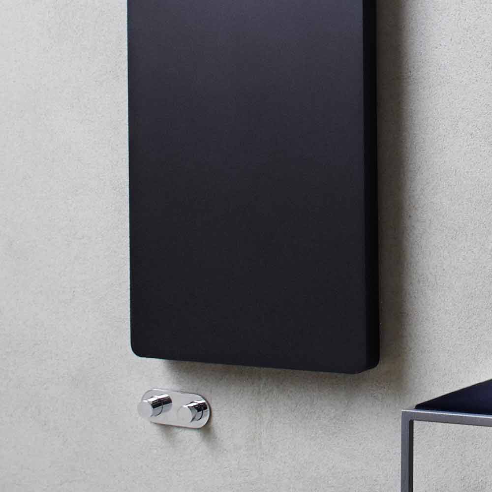 placa radiante hidráulica tem um design moderno e essencial embelezado com uma ligeira curvatura na extremidade para um efeito de pura leveza.