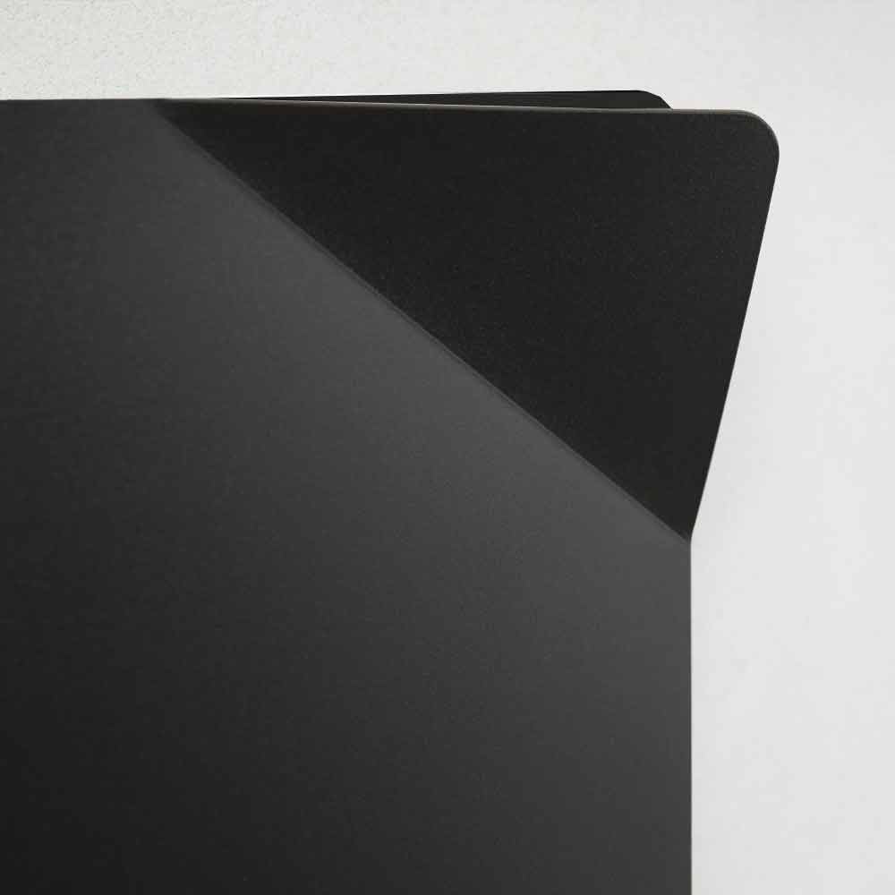 Disponível em diferentes acabamentos além dos presentes no menu drop-down; a aba inferior é sempre em cinza preto, RAL 7021.