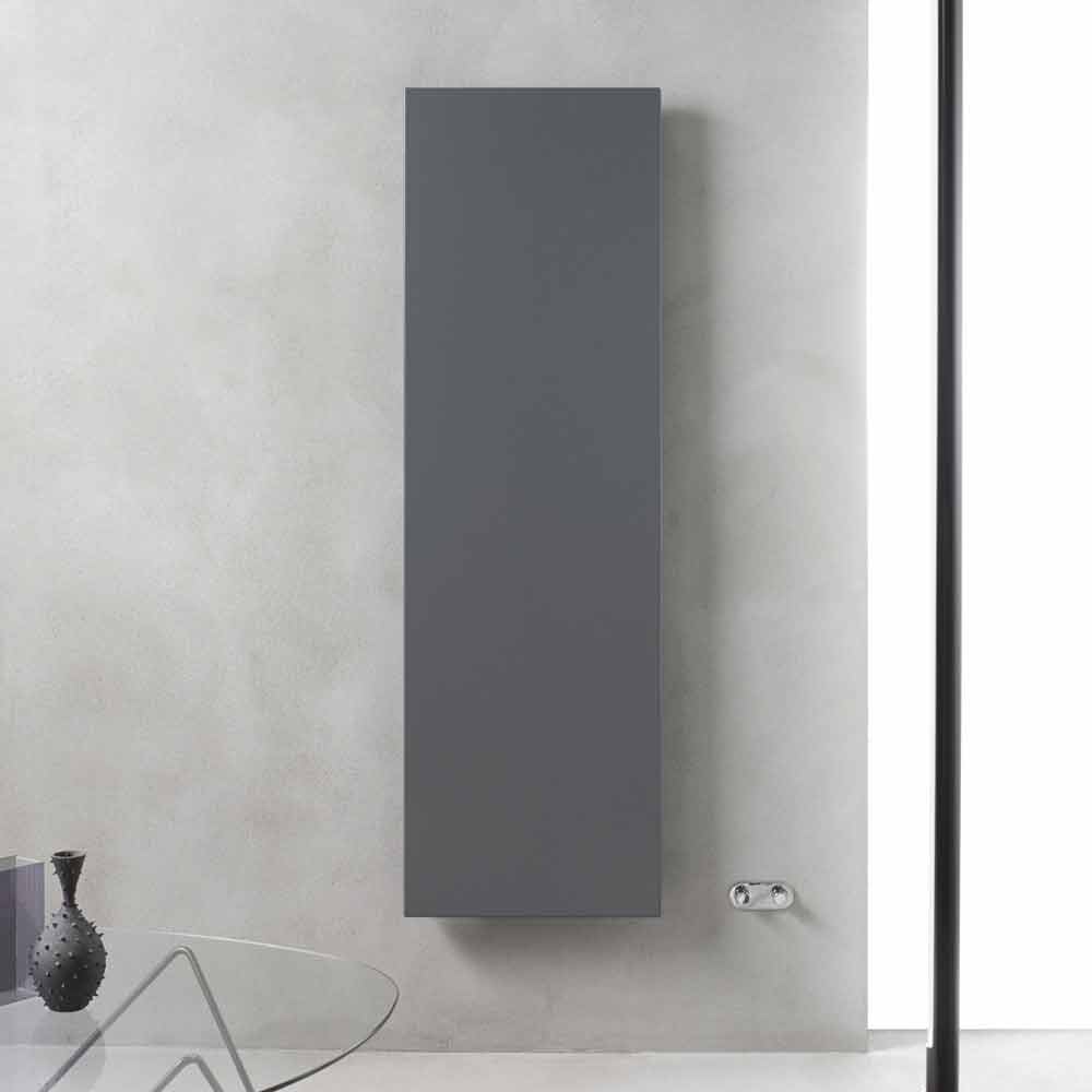 Radiador de parede vertical de design moderno em aço cinza ardósia fabricado na Itália.