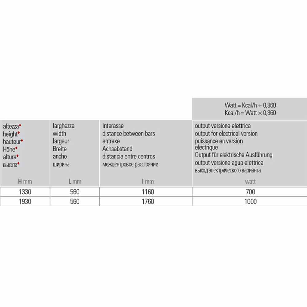 O termostato de 110 mm deve ser adicionado à altura. Caixa termostática branca como padrão para radiadores brancos; cromo para os radiadores coloridos e acabamentos em aço inoxidável. Fonte de alimentação monofásica de 230 volts.