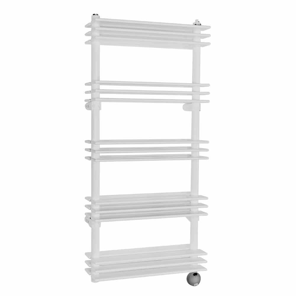 radiador elétrico tem um design multifuncional constituído por tubos verticais e placas horizontais que podem desempenhar a função de prateleiras reais.