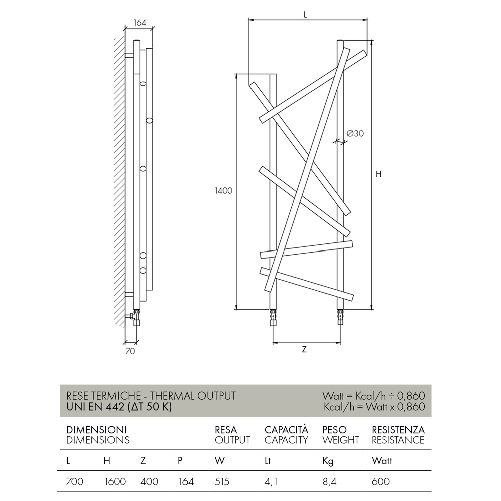 Feito de aço resistente e durável , este radiador é projetado para garantir eficiência e durabilidade. É perfeito não apenas para banheiros e spas domésticos, mas também para salas de estar ou entradas, onde o design pode ser apreciado como parte integrante da decoração do ambiente.