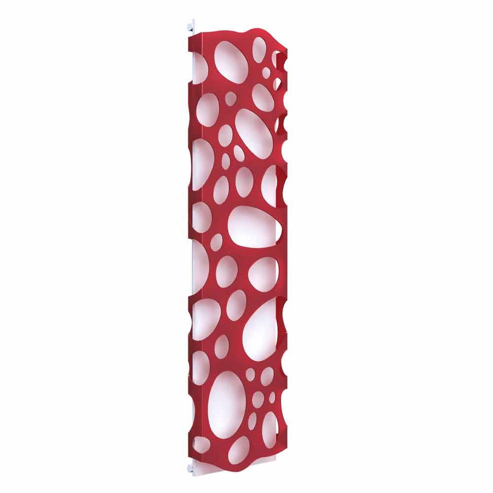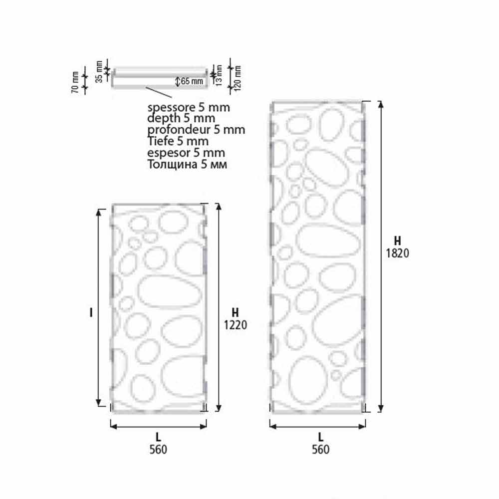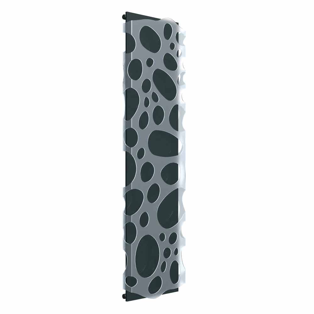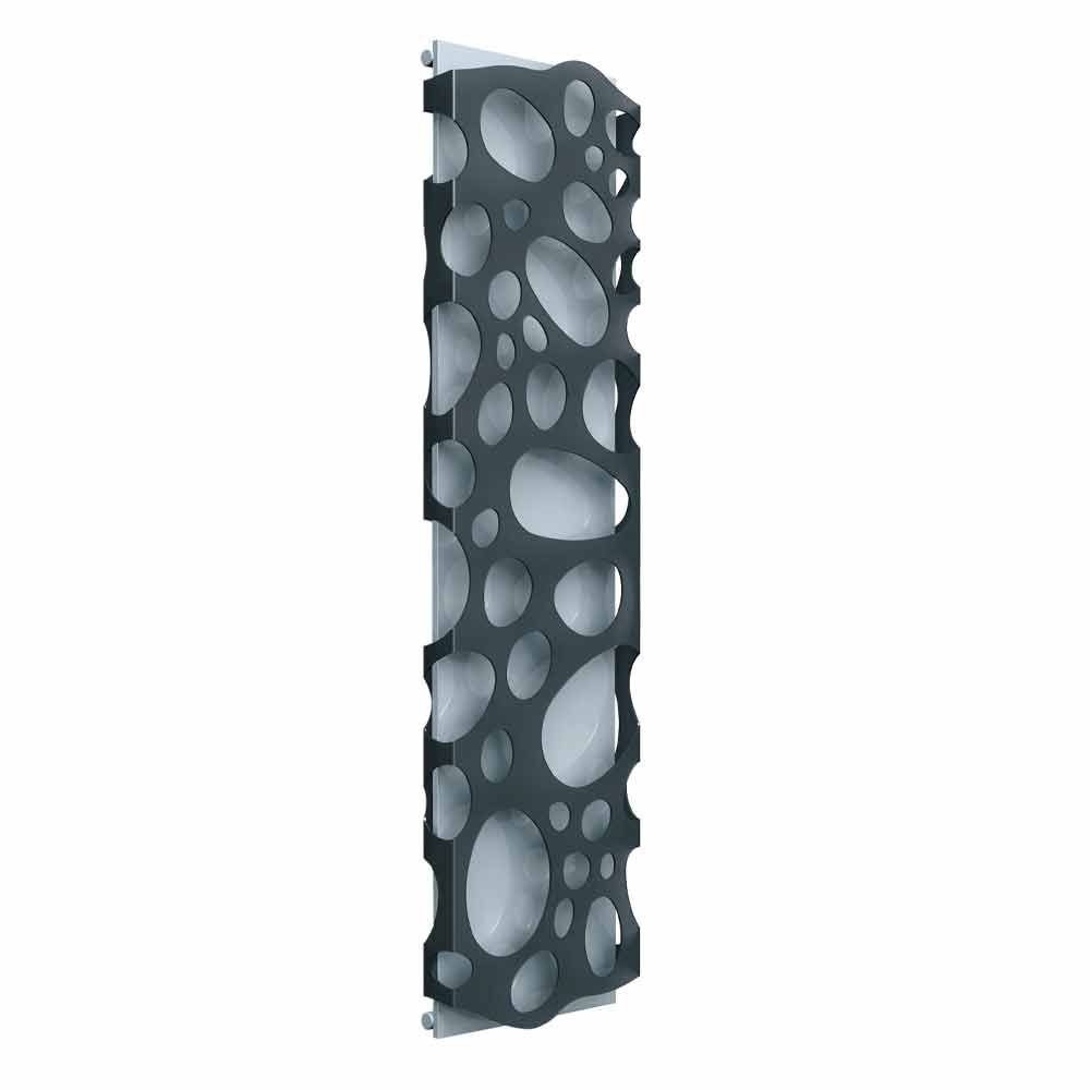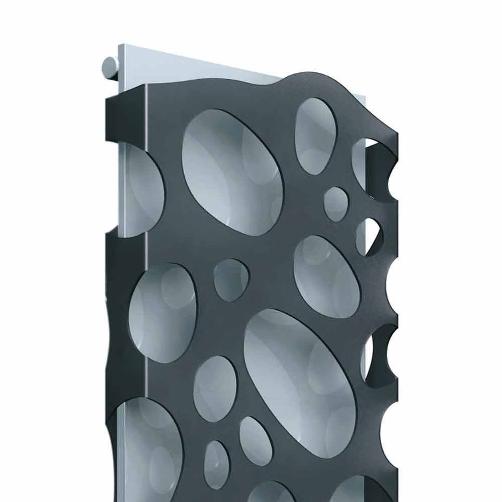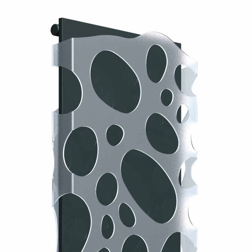 placa radiante hidráulica possui um design moderno caracterizado por uma placa de aço recoberta com uma decoração de metacrilato que muda de forma com facilidade e extraordinária.