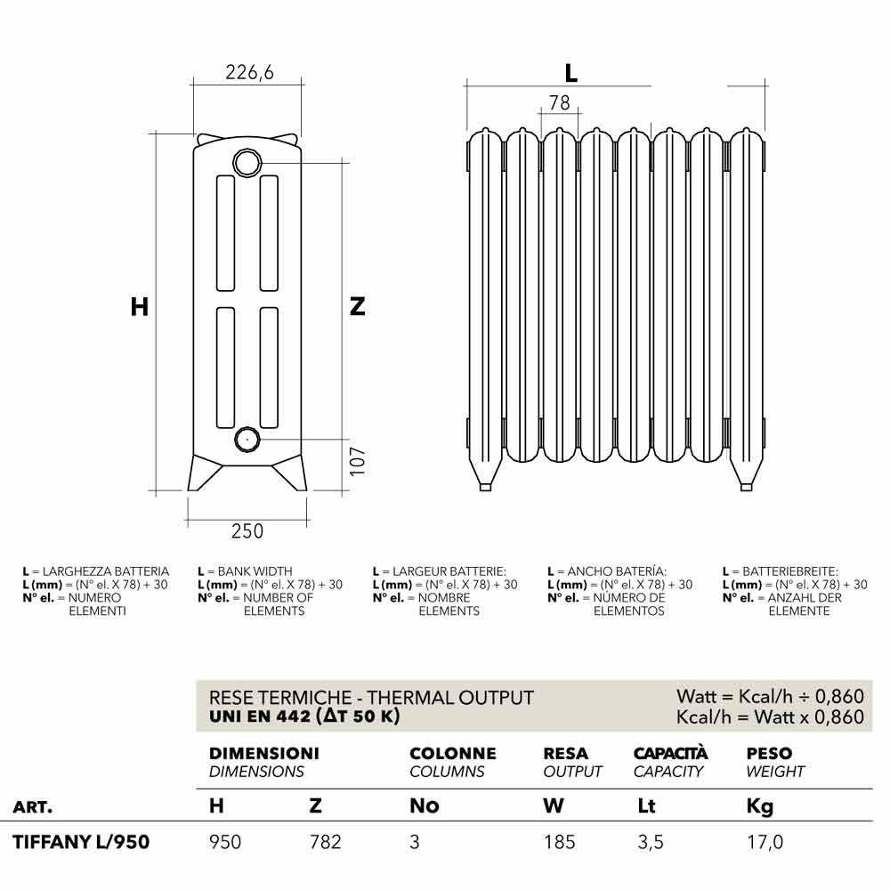 Elementos de ferro fundido montáveis, atenção aos detalhes, estilo único: Tiffany é um radiador que não compromete. Sua personalidade exuberante valoriza qualquer tipo de ambiente. Símbolo e função coincidem de forma exemplar: a riqueza da decoração, a sinuosidade das linhas, a suavidade da forma destacam-se num fundo de rigor geométrico essencial. A Tiffany aquece o ambiente visual e fisicamente.