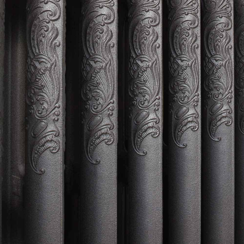 Radiador de piso hidráulico em estilo barroco em ferro fundido com 2 colunas e 7 elementos decorados.