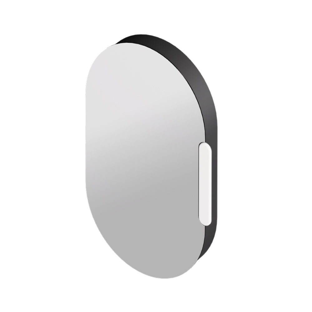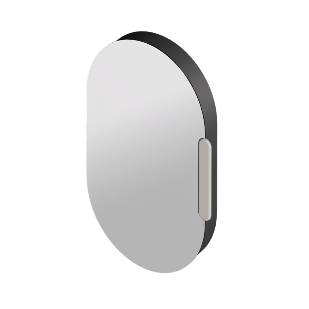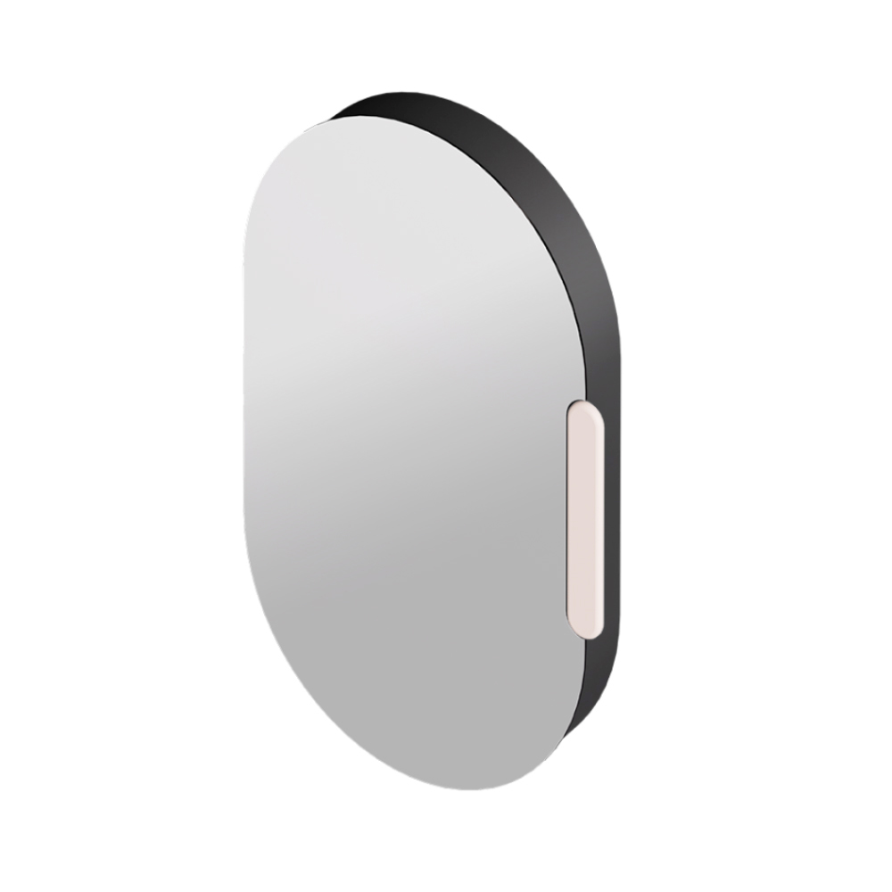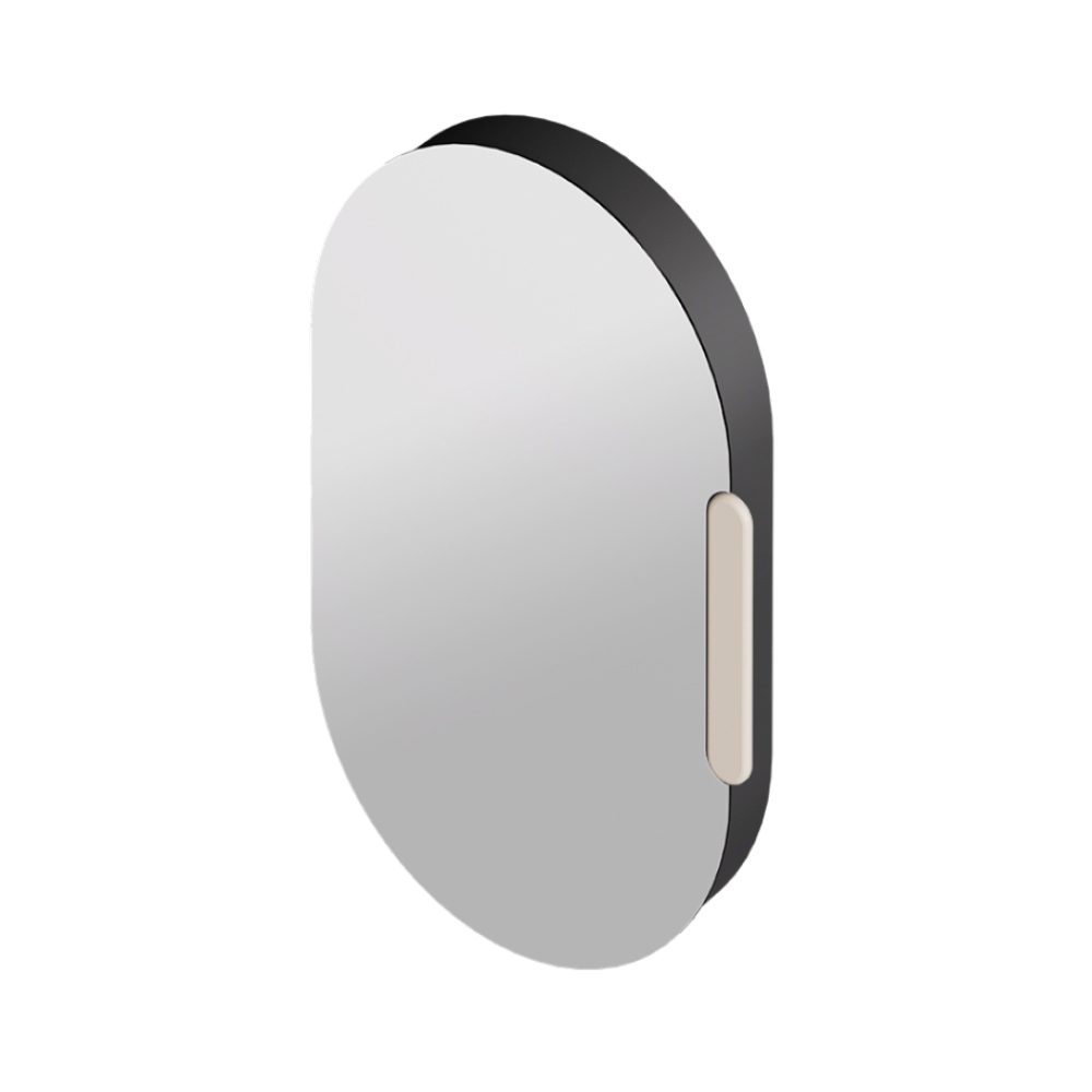 Este espelho oval com moldura de cerâmica não é apenas um elemento decorativo, mas também um recipiente inteligente : atrás da superfície reflexiva há compartimentos abertos práticos, ideais para organizar com elegância pequenos objetos do dia a dia.
