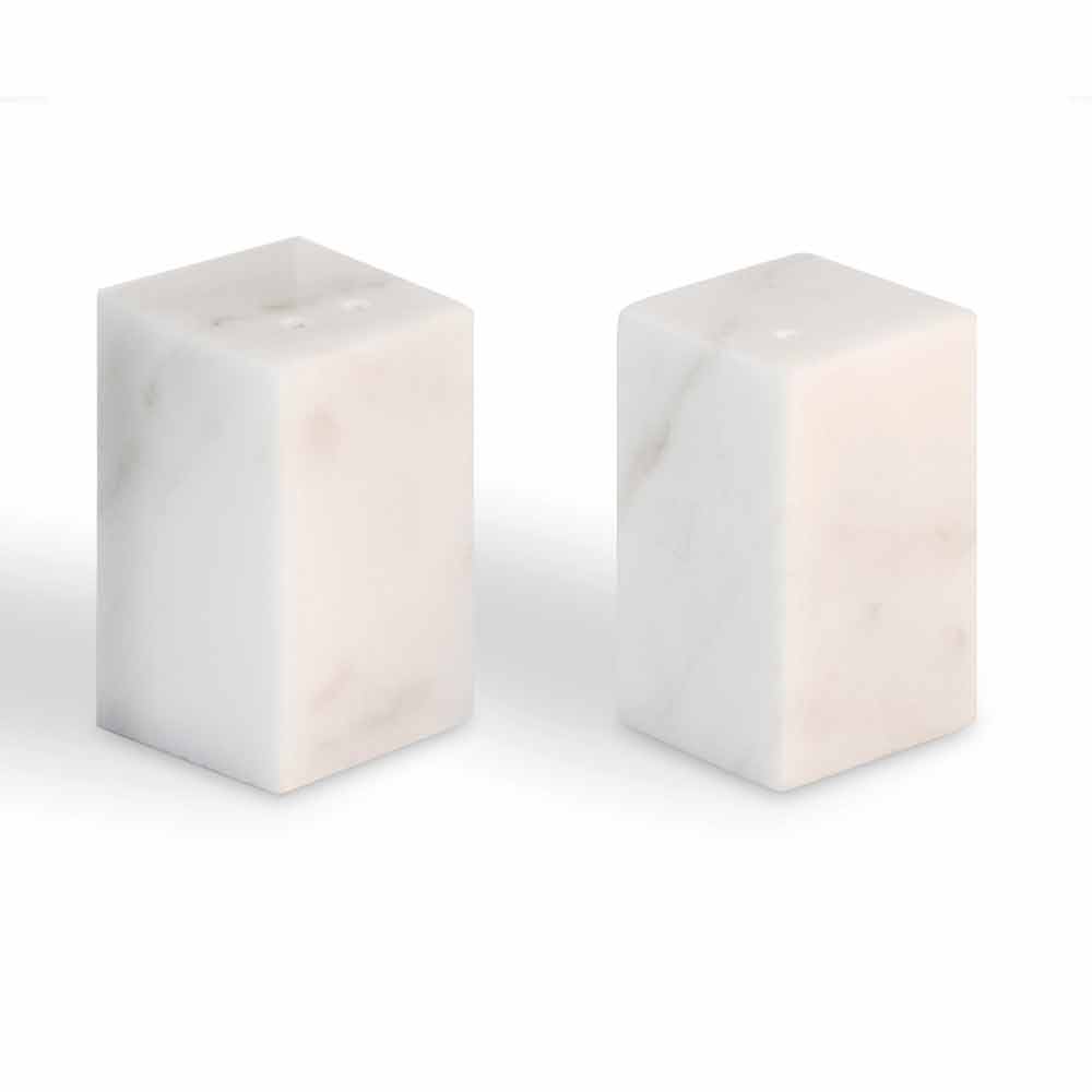 Recipientes retangulares de cozinha para sal e pimenta em mármore branco de Carrara Made in Italy.