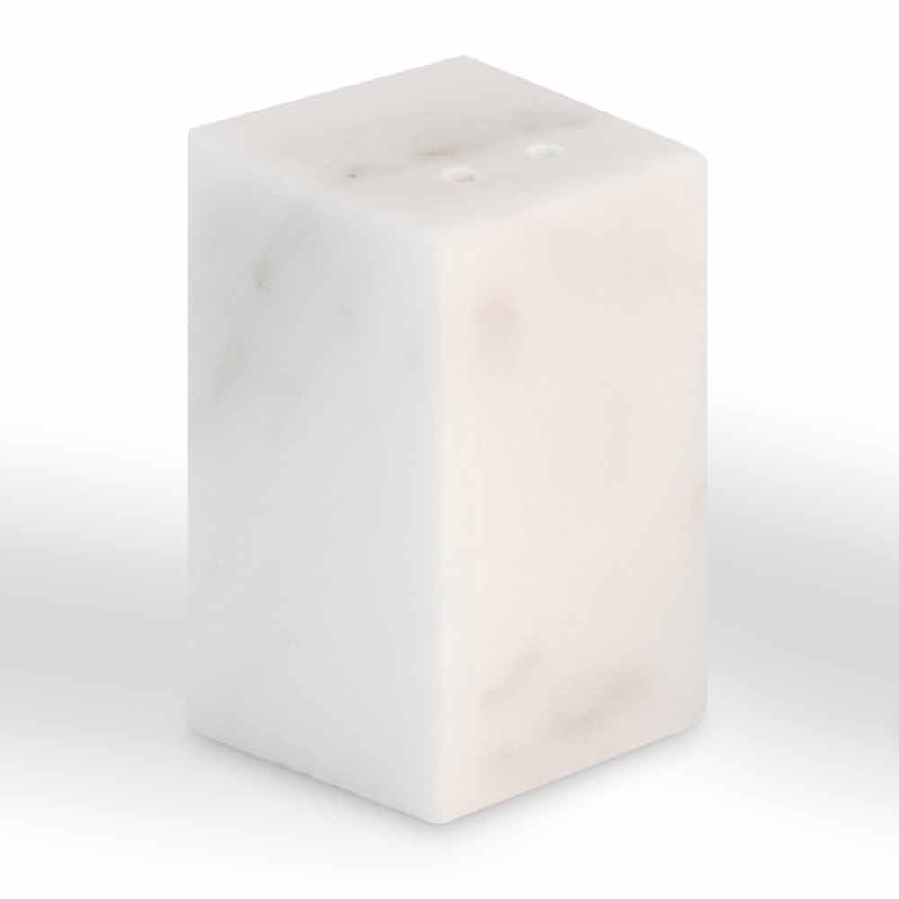 Recipientes de cozinha para sal e pimenta caracterizados pelo uso de mármore branco de Carrara devem ser considerados peças únicas, pois cada bloco de mármore utilizado difere dos demais pelos veios e tonalidades.