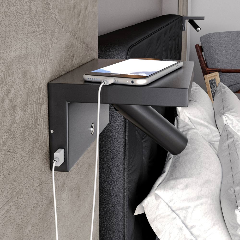 iluminação direta perfeita para quem gosta de se dedicar à leitura antes de dormir graças ao inovador LED regulável em três posições diferentes e ao mesmo tempo garante uma ligação cómoda para carregar os seus dispositivos electrónicos de forma prática e bem organizada através das duas portas USB.