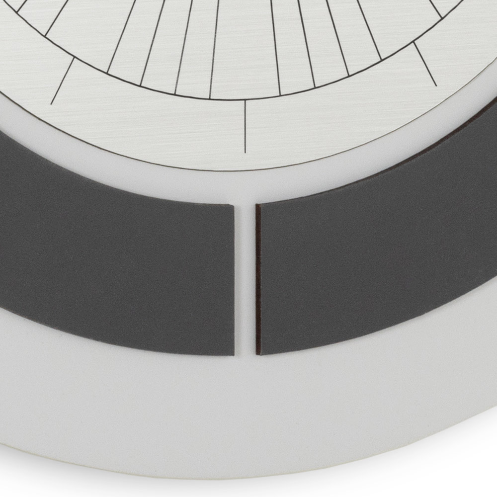 O seu design geométrico refinado, com linhas limpas e contrastes de cores, torna-o perfeito para ambientes modernos e essenciais. O formato oval, confere originalidade à parede, enquanto o grafismo interior assimétrico recorda a estética da arquitetura e da arte contemporânea.