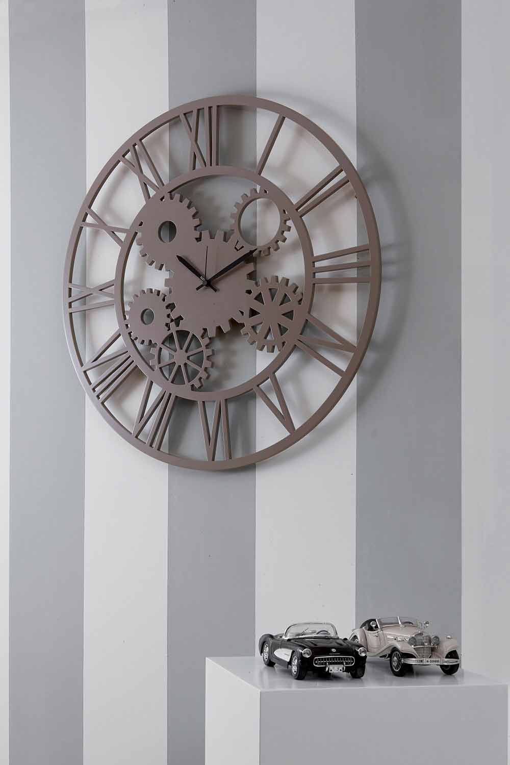 Relógio de parede grande em estilo gasto, design redondo em madeira branca, cinza ou cinza, fabricado na Itália.