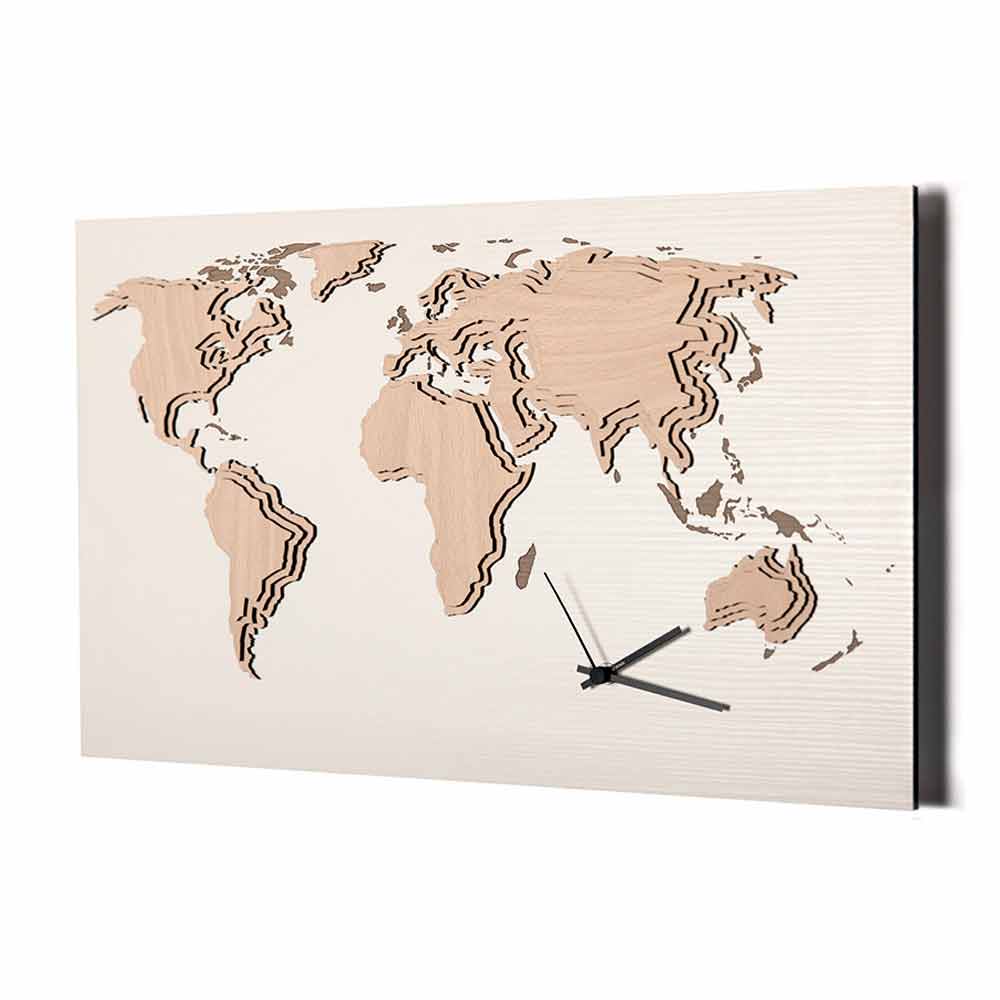Feito de madeira de freixo com desenhos a laser de madeira natural entalhada, o complemento retrata o mapa do mundo em diferentes níveis de forma elegante, naturalmente.