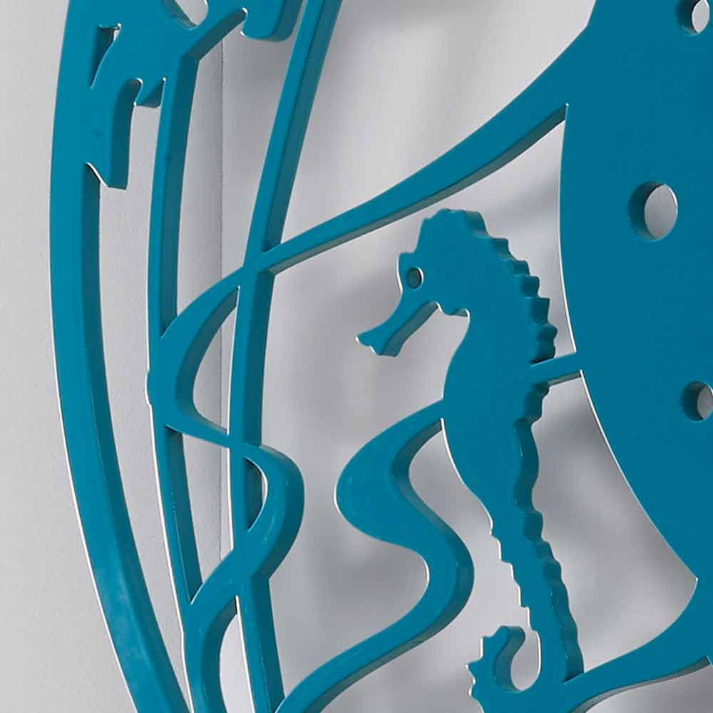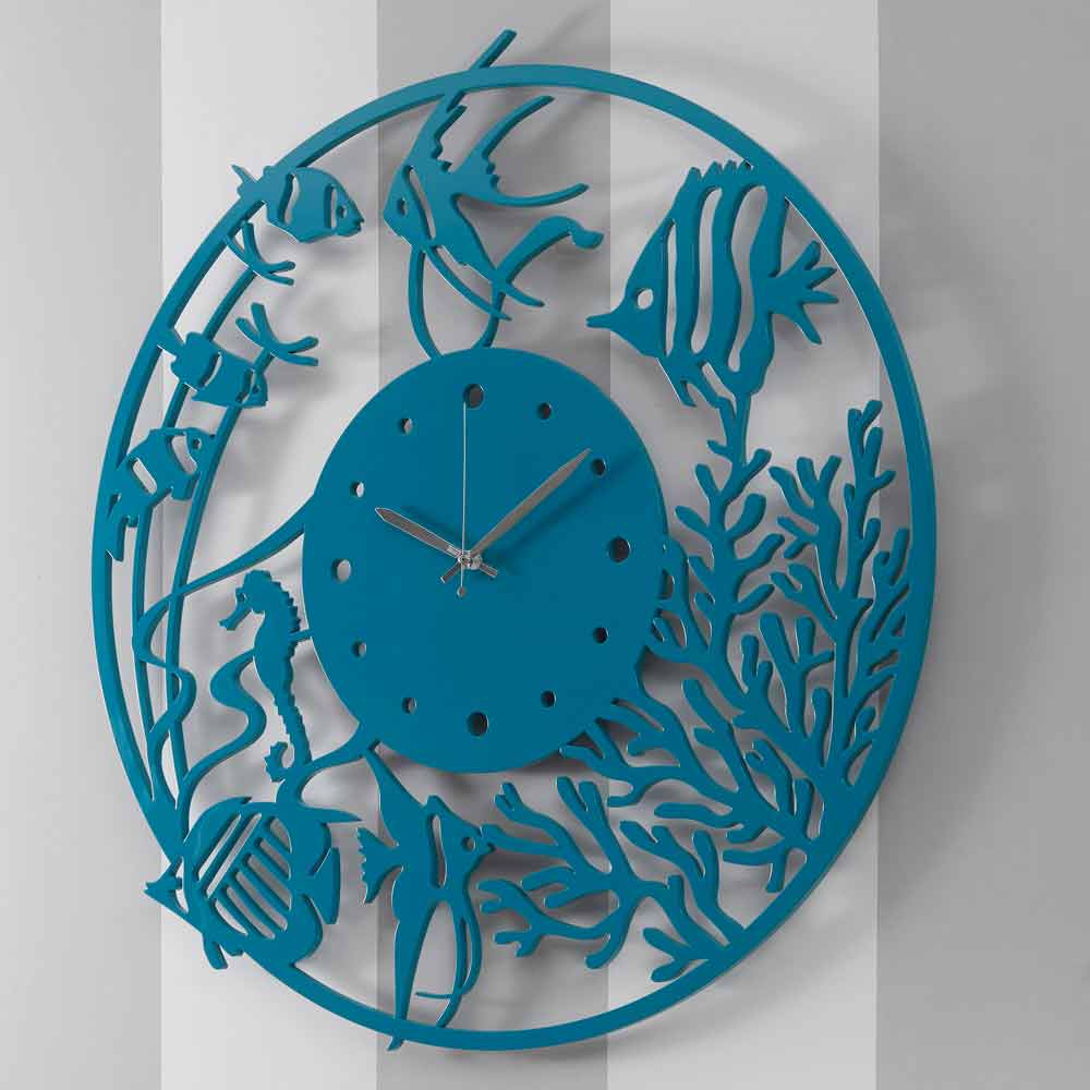 relógio de parede redondo representando um aquário e a vida do fundo do mar.