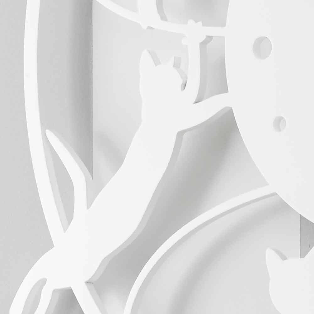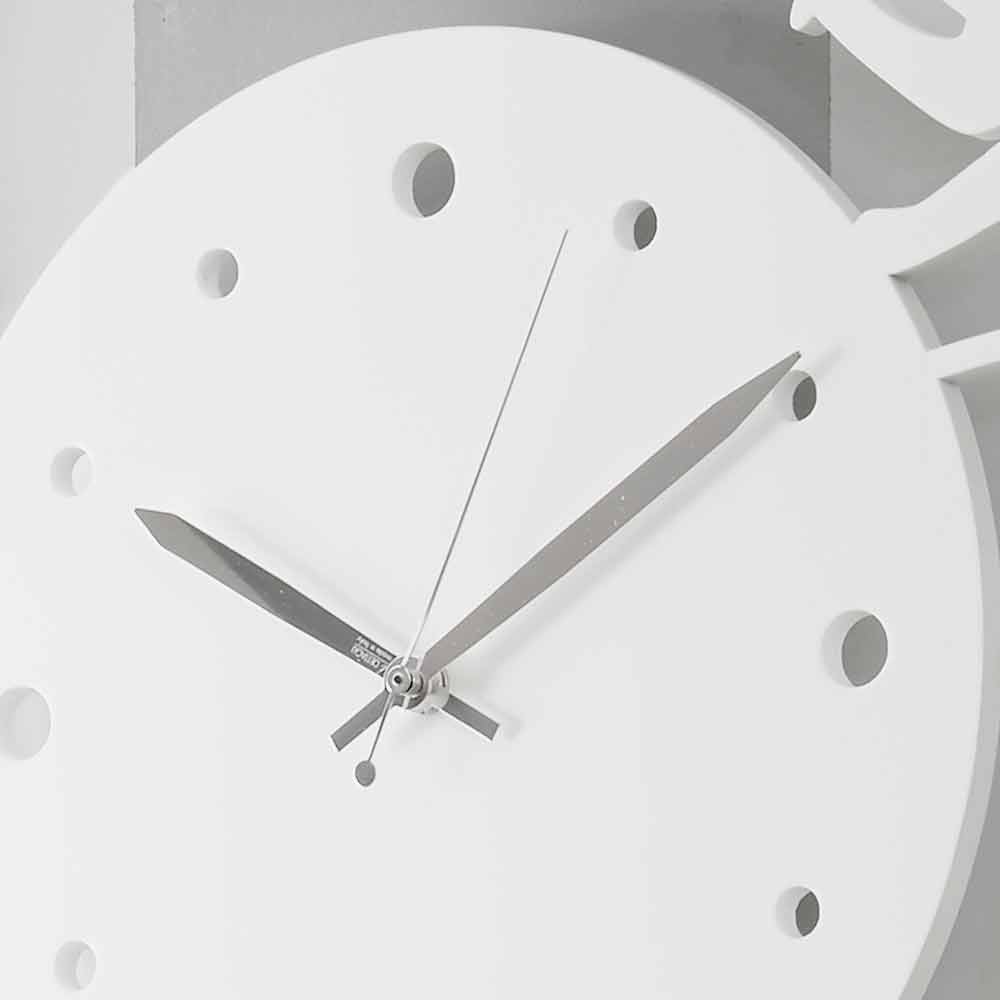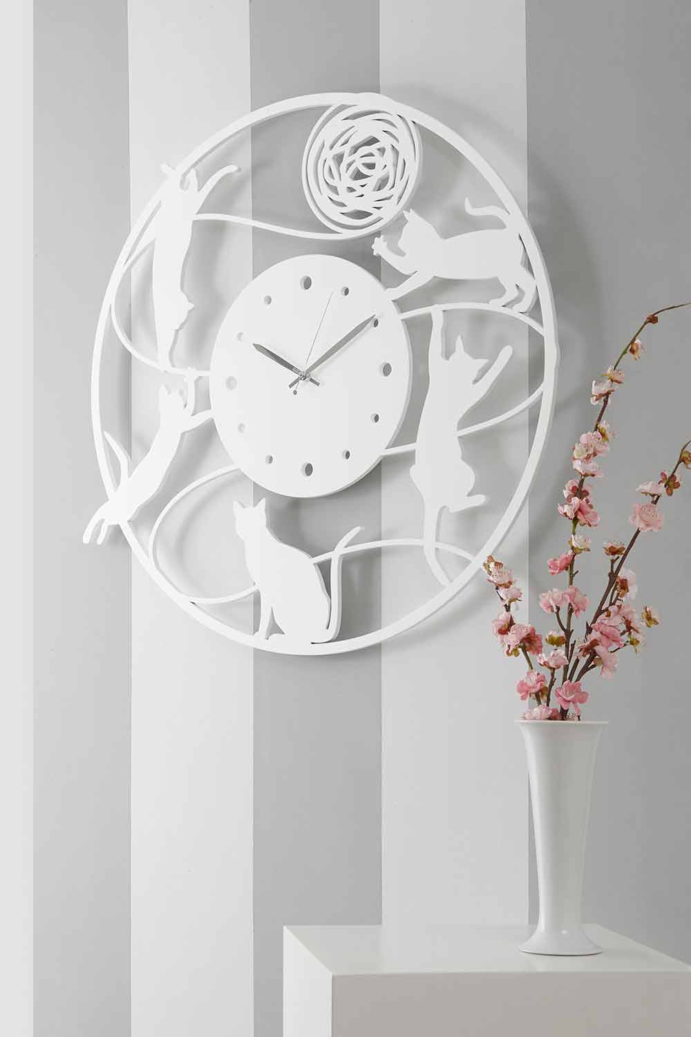 Relógio de parede grande e original com um design redondo e moderno, em madeira branca, preta ou cinza, com gatinhos, fabricado na Itália.