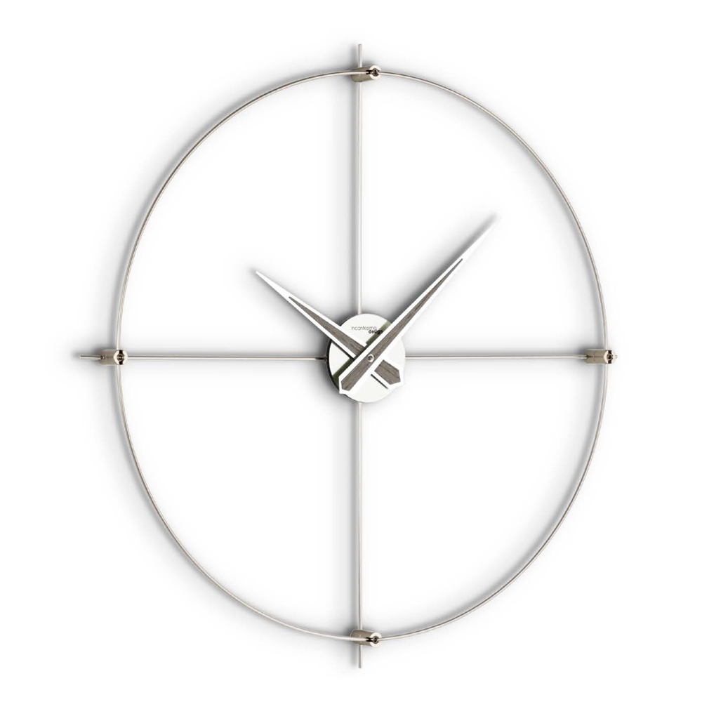 Este relógio de parede incorpora a quintessência do minimalismo moderno . Seu design essencial, com estrutura em aço , chama a atenção pela elegância e simplicidade. Os ponteiros alongados estendem-se graciosamente, tocando as bordas do círculo e oferecendo uma leitura clara e direta do tempo .