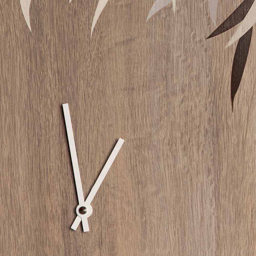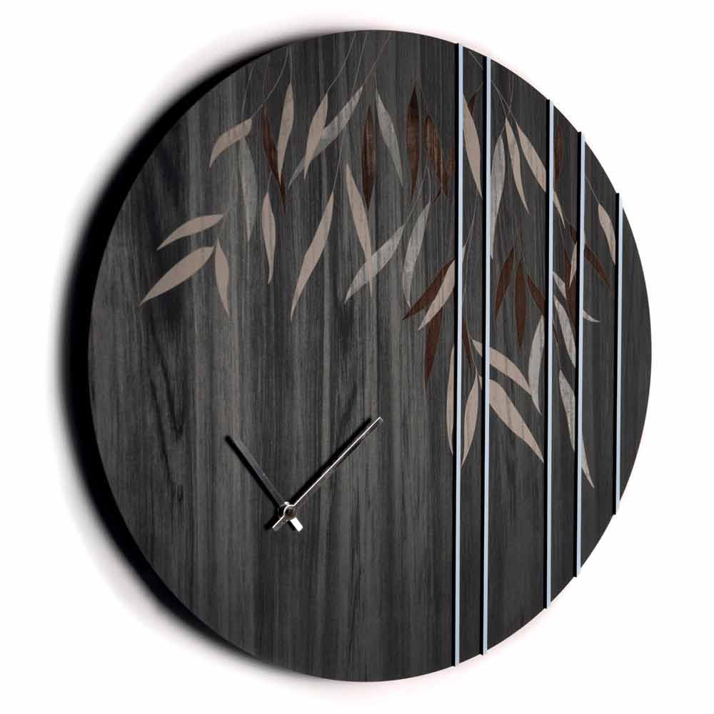Relógio de parede redondo em madeira com gravação a laser e decorações em madeira lacada, feito em Itália design.