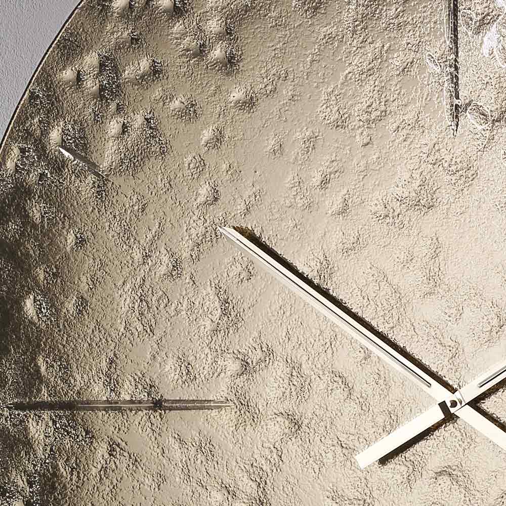 O relógio de parede em vidro fundido ondulado com acabamento em bronze é um acessório de decoração marcante, que combina artesanato e design contemporâneo. A superfície texturizada, caracterizada por irregularidades e texturas tridimensionais, cria jogos de luz refinados que tornam cada peça única.