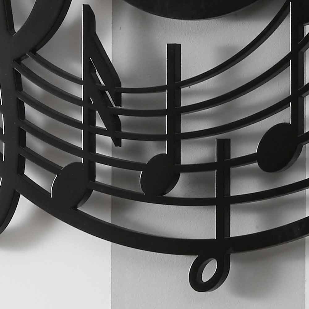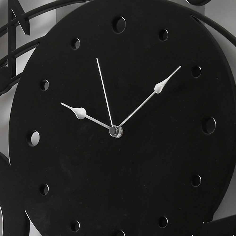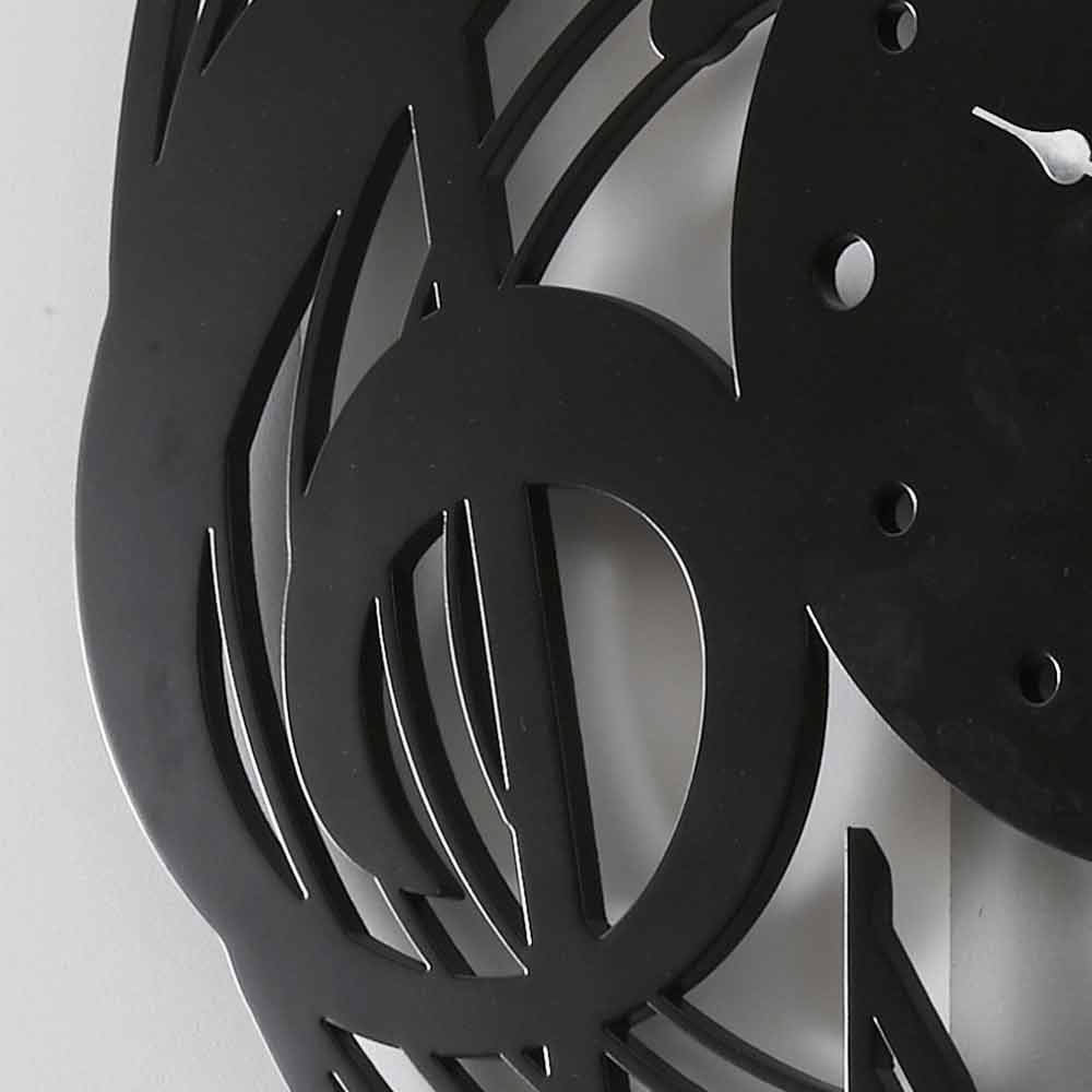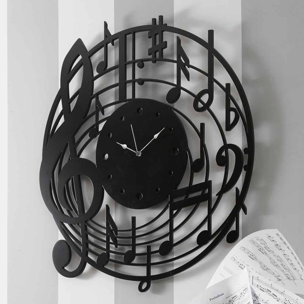 Relógio de parede grande, redondo e design moderno com notas musicais em madeira preta e fabricado na Itália.