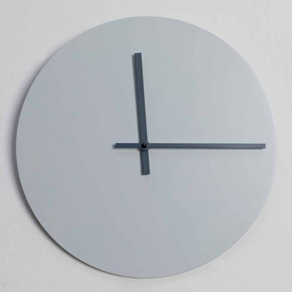 Relógio de parede em madeira lacada a pó cinza e azul baleia, design redondo moderno fabricado em Itália.