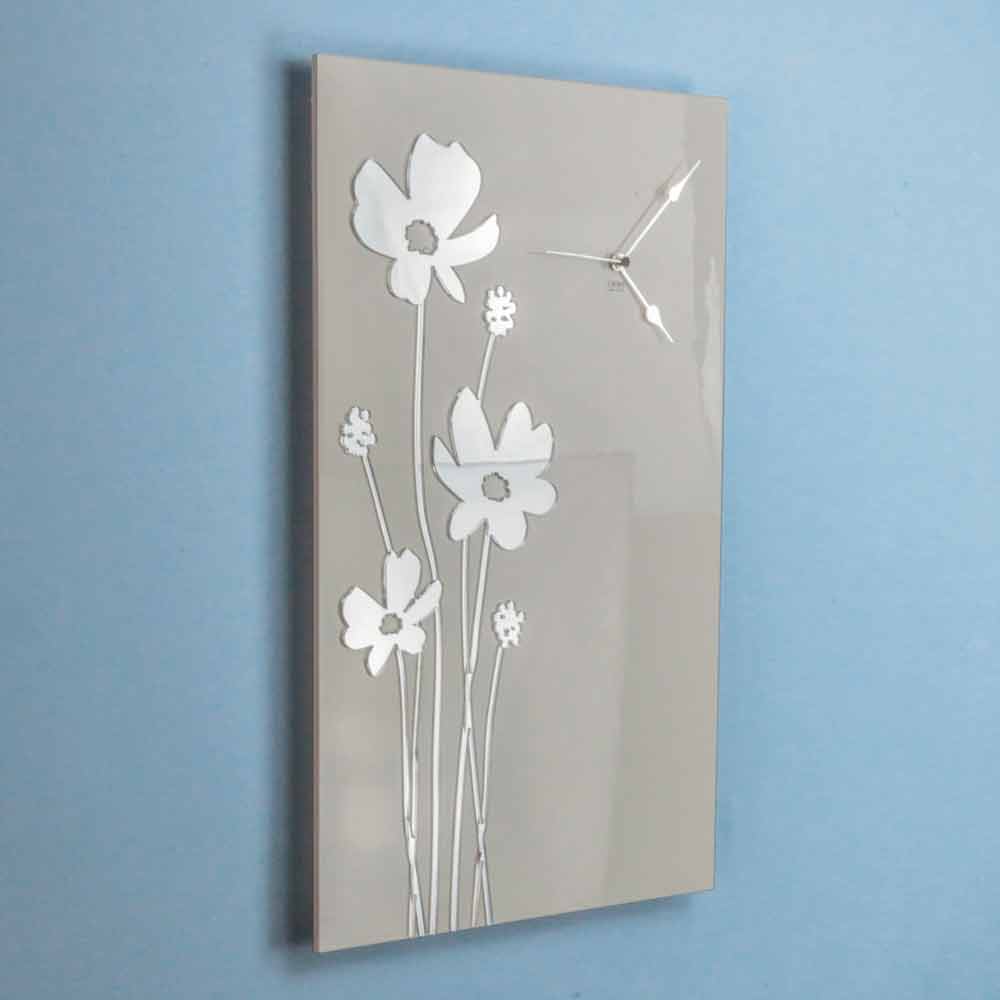 Relógio de parede retangular de design moderno em madeira branca com espelhos de acrílico embutidos, fabricado na Itália.