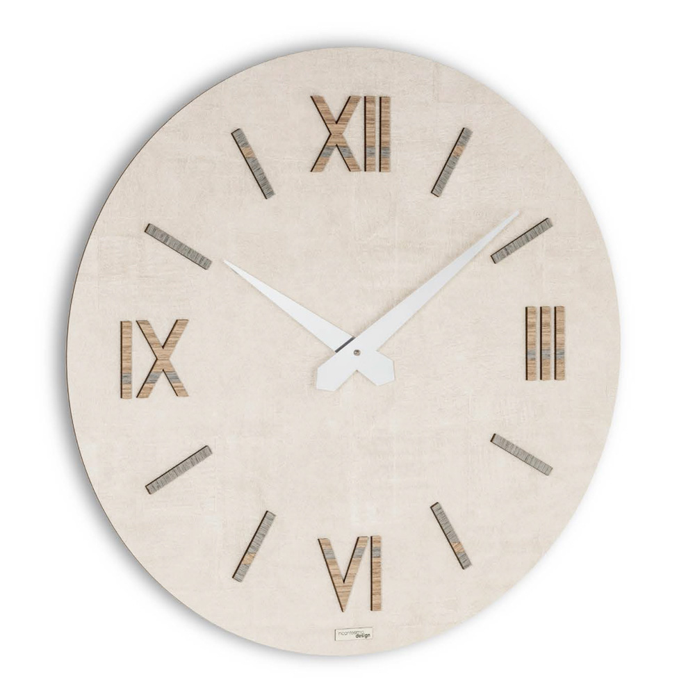 Os algarismos romanos foram interpretados em tom contemporâneo, com incrustações em relevo que se destacam no mostrador, oferecendo legibilidade imediata e forte impacto visual. Os ponteiros destacam-se graciosamente, garantindo que as horas possam ser lidas com um simples olhar.