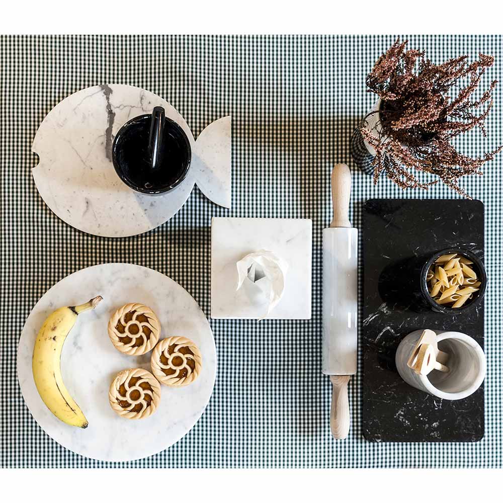 Rolo moderno em mármore branco, cinza ou Paonazzo com cabos de madeira, Fabricado na Itália.