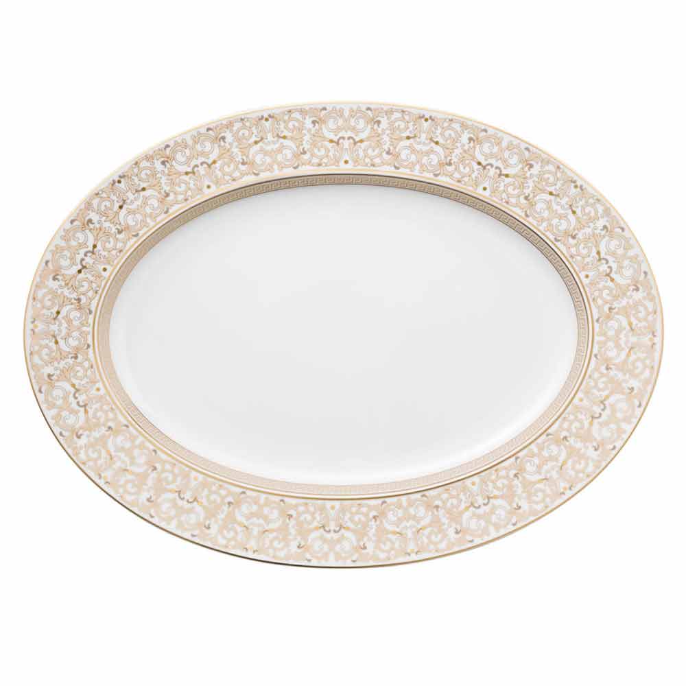 O prato oval de 40,5x30 cm da Versace faz parte da requintada e luxuosa coleção de mesa Medusa Gala.
