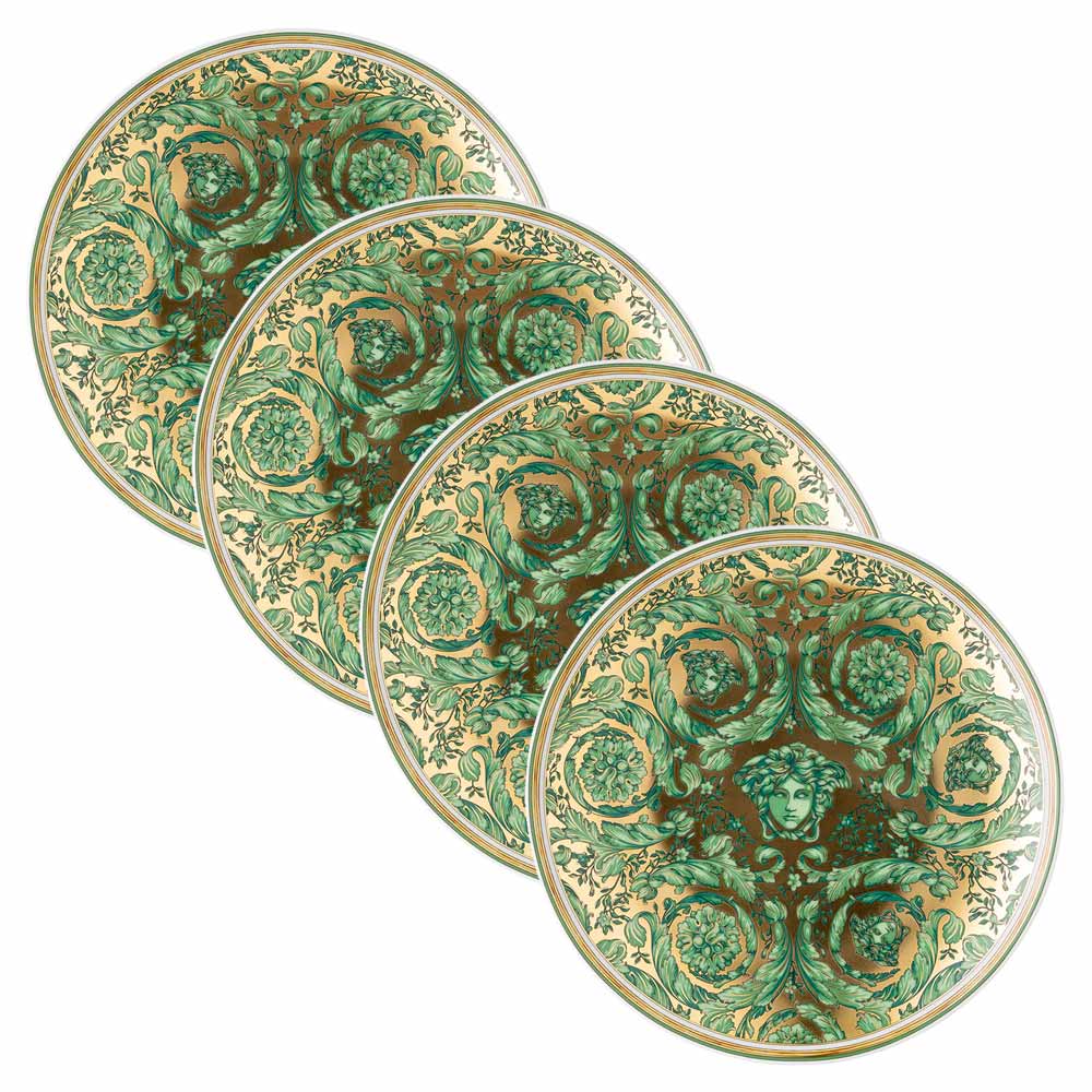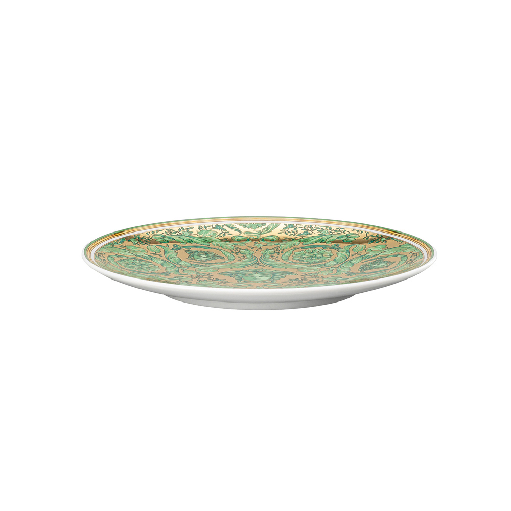 Os tons verde esmeralda e os motivos barrocos entrelaçados criam uma atmosfera suntuosa e acolhedora, transformando sua mesa em um cenário de sonho. Perfeito para adicionar um toque de glamour e sofisticação aos seus jantares de Natal, é um objeto que combina tradição e modernidade com o estilo único da Versace.