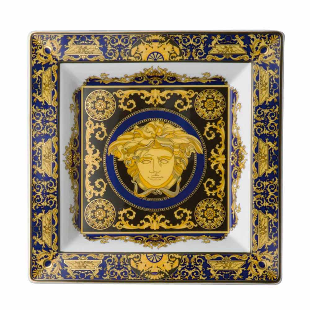 O destaque desta coleção é uma magnífica cabeça de Medusa dourada, a marca registrada inconfundível da Versace, cercada por expressivas decorações barrocas. A cabeça de Medusa está presente – no centro – em todas as xícaras e jarras, bem como em todos os pratos grandes e pequenos da coleção “Medusa”. Cores verdadeiramente aristocráticas – vermelho brilhante, dourado elegante e preto – e elaborados padrões e ornamentos de filigrana dão à cabeça de Medusa uma suntuosa moldura de cor de elegância sem precedentes. A coleção “Medusa” inclui um serviço de mesa completo e um serviço de café, bem como vários acessórios. Grandes xícaras de café da manhã para cappuccino e latte, pratos de sopa e tigelas fazem parte da coleção, assim como acessórios de presente valiosos e muito pessoais, como o porta-guardanapos, o porta-velas, vasos e um elegante conjunto de fumar. As duas coleções de vidro “ Medusa Lumière” e “Méandre”, bem como a coleção de talheres “Medusa Gold” completam a mesa elegante e colorida no estilo único do mundo Versace.