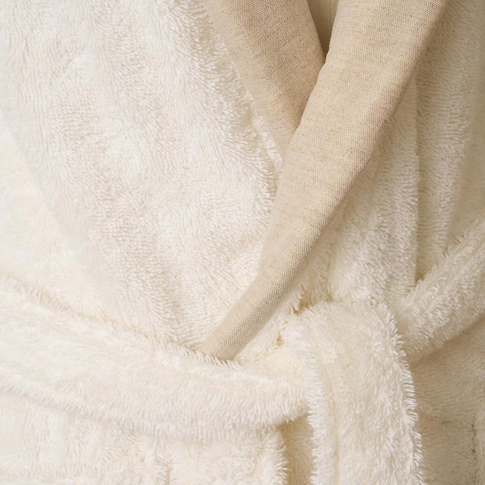 O detalhe que torna este roupão verdadeiramente especial é o babado de linho puro , que não só acrescenta um elemento decorativo sutil, mas também um contraste de textura que enfatiza o artesanato e a alta qualidade do produto. A combinação de algodão e linho não só garante durabilidade e resistência, mas também conforto excepcional, com absorção superior que deixa você seco e envolto em pura doçura.