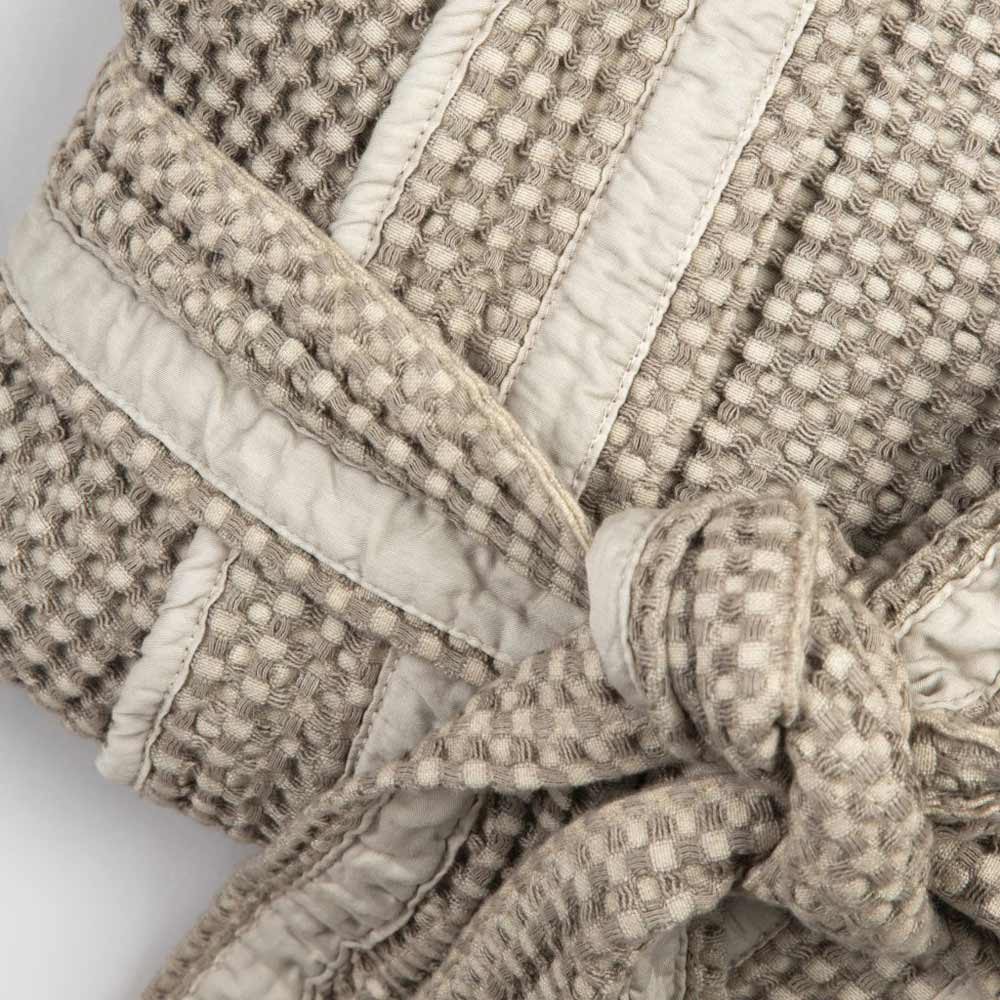 roupão de linho e algodão disponível nas cores retrô ou gesso antigo.
